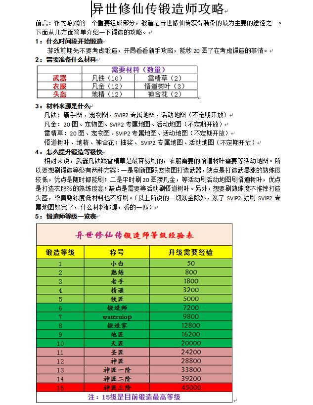 异世修仙传锻造师攻略