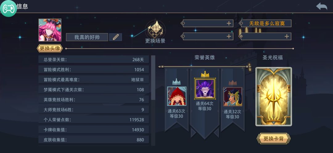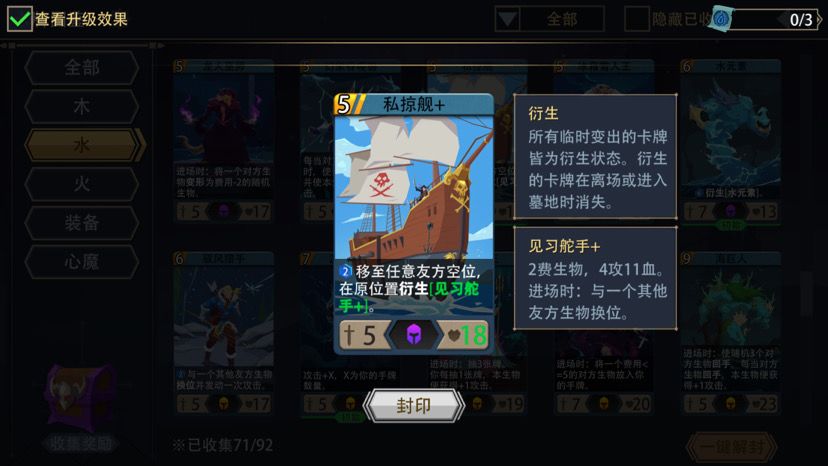 打冒险的一个思路(26级) 利用被动 使有进场效果的生物(低费)获得高攻击和清场 这里主要利用了被动加攻击的 (玩熟练了可以适当搭配一两张 效果是 对全体反击生物都生效的生物卡) 被动,有进场的生物获得 反击和加攻(相当于出生自带两装备) 主动,再触发进场生物的进场效果(可以获得加攻) 适当时机开启技能会有奇效哟 出生卡组 我个人喜好,前期先把二费的白雕换掉或去掉然后再野熊,再到野猪,火球可以留下