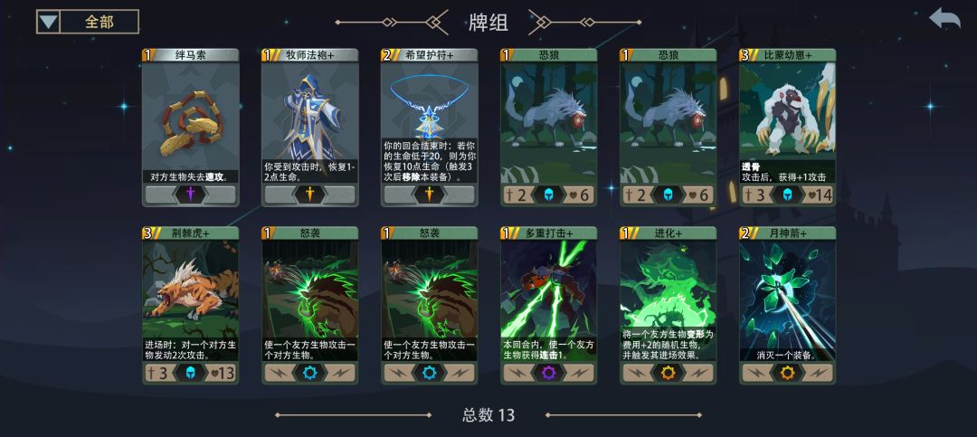 被动治疗加攻 围绕着 树妖,利用树妖被动被友方指定回血加攻,进行清场打伤害 核心:突袭,2到3张 多重打击,有就拿,1到2张 生命互换器有就拿,换血加功 魔法孢子yyds,有就拿,毕竟可以使树妖永久加攻 花仙子可以拿一个,给树妖加血,可以触发两次加攻 治疗之触看情况拿 卡组尽量少于20张 (地狱3,打第一层的时候难受,卡组什么都没有。 基本上打得过第一层首领,说明卡组稍微成型了,不出意外,后面两层