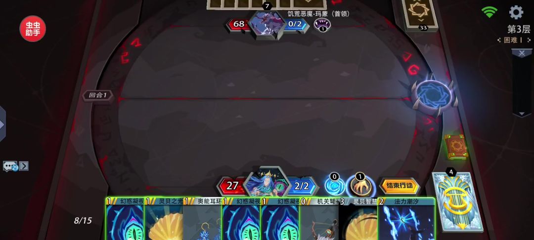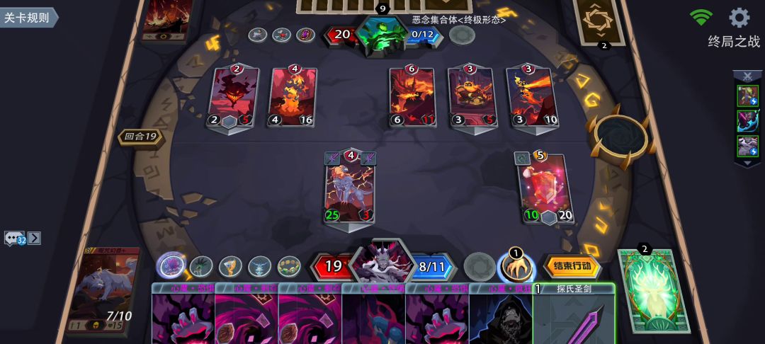 要点如下: 1.别把卡抽过,导致重新洗牌(哥布林造圣剑两个材料会直接返回抽牌堆,造完就能抽回来) 2.三张噬咒幻兽在BOSS打残前尽量留一张在手牌,风暴雷兽在把BOSS打残前尽量留一张。用来补刀和承受圣剑。 3.没打BOSS到半血时,靠2张噬咒幻兽加哥布林站场,尽量少进行攻击,要进行攻击尽量就是高伤害打脸,防止心魔卡过多污染牌库。
