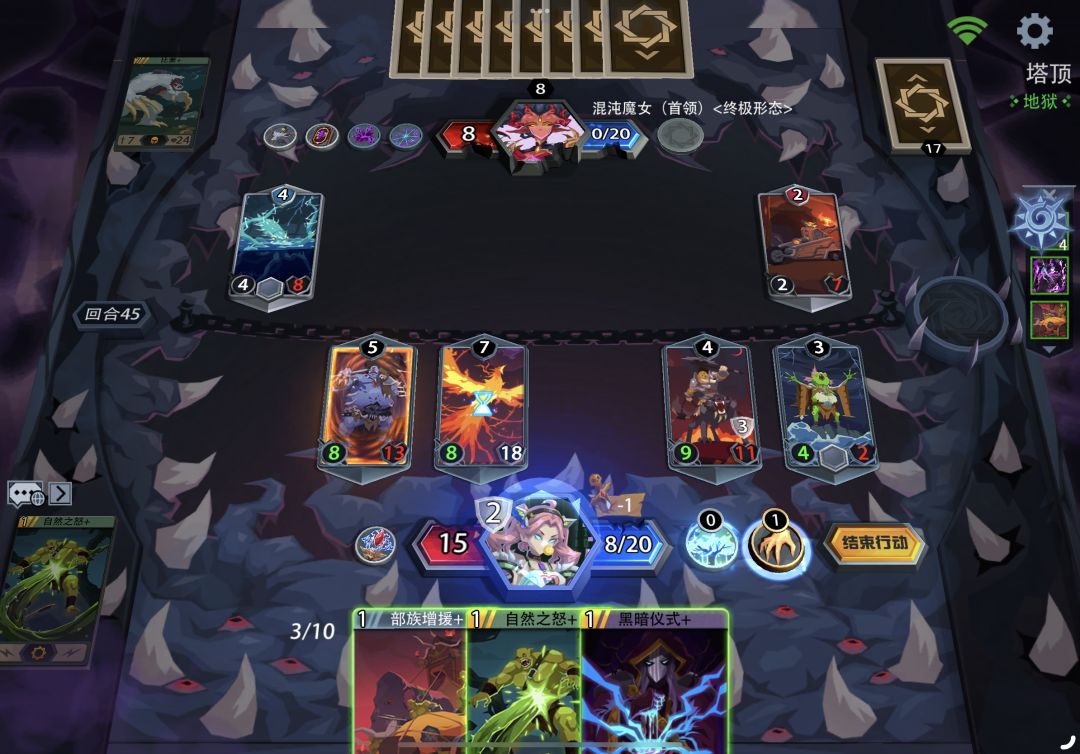 捂脸哭[表情_捂脸哭]捂脸哭[表情_捂脸哭]捂脸哭[表情_捂脸哭]捂脸哭[表情_捂脸哭] 新神这强度,不能说很弱吧,但也真是卡线。 打个地狱三总归是绰绰有余,但黑塔打魔女纯折磨,除非你能找到适合的卡和装备。 不过,如果找到拆装备的,可以考虑拖50回合获胜,这玩意是真能拖呀。晕了[表情_晕了]晕了[表情_晕了] 随机衍生出来的生物基本只有铺场防止被打脸的作用,想出个好用的,你得去洗把脸,而且,经常是