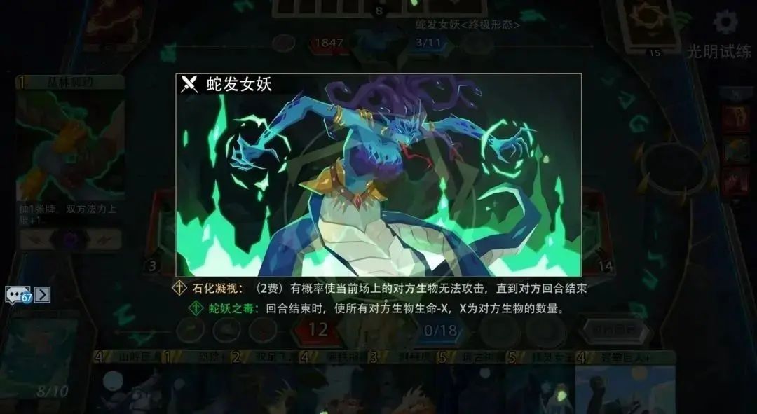 BOSS介绍:蛇发女妖 技能介绍:蛇妖之毒强化技能(打掉150血后):多了敌方随机生物无法攻击的效果。(该技能目标效果有可能是多个) boss卡组:有连锁闪电,养高攻击力的小伙伴注意。 当日可选英雄: 英雄推荐: (1)唤潮海妖(储存法力) 卡组思路推荐:蓝龙回响追梦套(蓝龙,回响(以上2个加法力),图书管理员(手牌上限),2张灵贝(抽牌),进场加攻击的3费生物魔力浮龙(加攻击)……) 魔力浮龙+