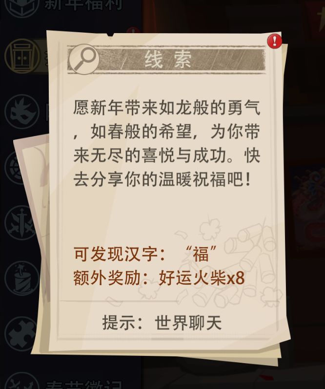 拼凑春联活动线索(7)世界聊天(福)