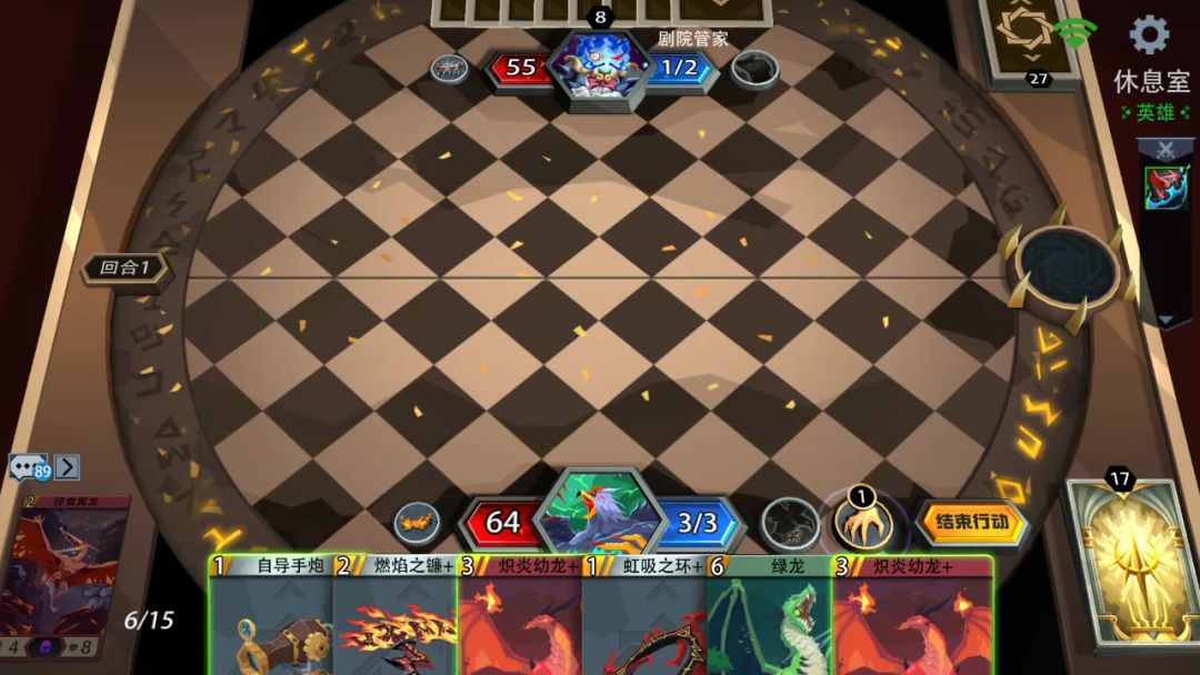 英雄(面具)选择:怒鸮 卡牌:炽焰幼龙