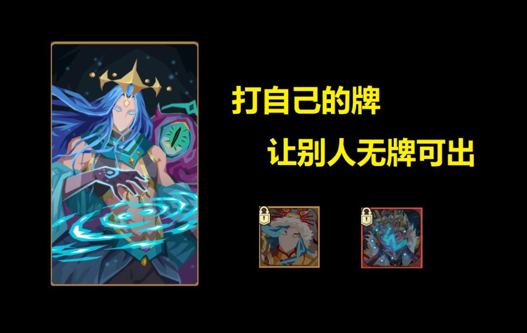 一、英雄介绍 就提两点 1——本英雄在抽牌时具有解场效果,玩家每回合使用1费抽牌功能也会触发被动效果 2——主动技能的效果简单来说就是弃几张牌,抽几张牌,可以理解为替换当前手牌,技能效果和小怪【命运占卜师】有点类似 二、玩法 & 思路 官方设计该英雄的初衷很好,核心玩法就是疯狂抽牌,充分发挥被动技能的解场效果,使玩家场面占优。如果遇上初始手牌卡手的情况,可以直接开启主动技能替换手牌来应对。但持续过