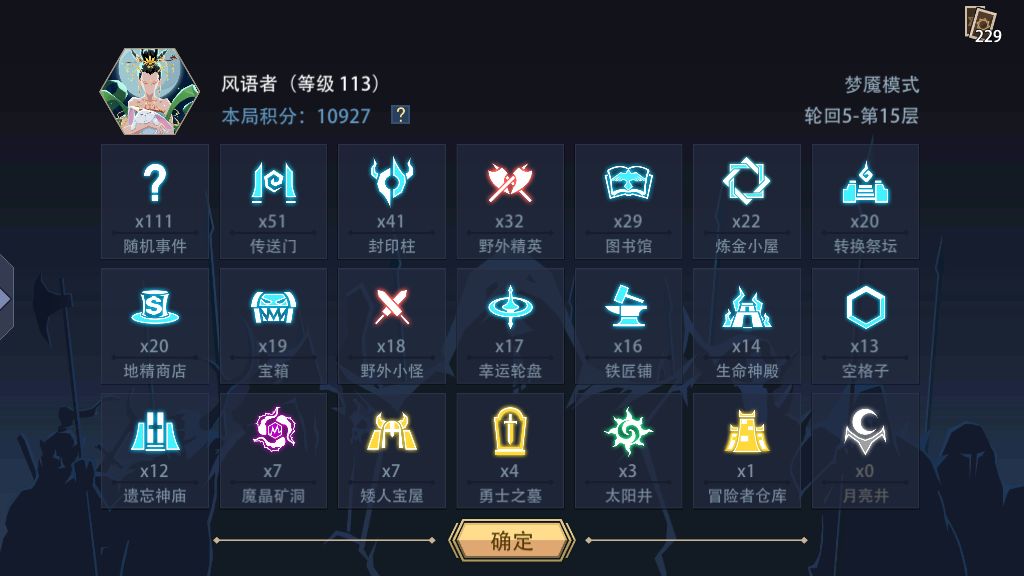 女王大人风行者虽然被砍,依旧是水系1回合秒15层BOSS的唯一人选,6层烘炉,12层才来经验书,14层附魔宝石,本来是打得水系梦魇75场成就速刷(非空格流),最后感觉精英不少,6层转了凹分,血量是满血,但是没到400,后续期间还放了4个精英(时间结束3步内,全局只用了一次传送符石)。 重要点来了,阵容为带皮双风行,道具衍生风精灵,道具拉卡组2费生物,手牌衍生小蓝龙,固有风行,风精灵,2张法力柱子(