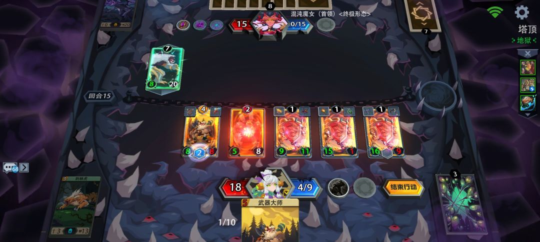 黑塔:开局进去删2熊,开2牌,开一个装备 A:兽人统领或雷霆术士+加攻装备(斧头和连击手套最好)(图1-4) B:加攻装备+后期加入2张抽牌的。(图5)抽牌频繁触发黑塔洗牌扣血,多次触发格斗士被动 天赋建议第一/三条 冒险同上,带老虎皮🐯速杀对面。 梦魇可以2费地狱犬+3费狗头军师,没有地狱犬就用另1个2费进场加攻顶替(可看我格斗士另外的帖子,大概的玩法) 变装模式,基因融合,一率速通[表情_大笑]