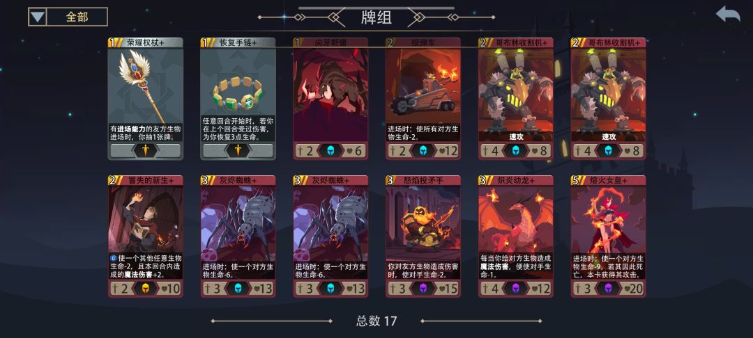 正好在刷,顺便记录一下,有需要的交流 暗系: https://www.taptap.cn/moment/641801140341573312?utm_medium=share&utm_source=copy&share_id=D7A464BC48DC 通用: 0.卡背:基本就三个,按优先级如下,用先知丢对面牌,森林回4血,如果拿到装备可以考虑用锤子卡背复制,其他不考虑 1.卸对面装备找2费哥布林 2