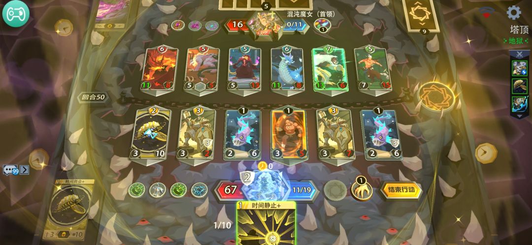 最后卡组13张,天赋第一条点满,剩下的第二第三好像影响不大,我选了第三。30级5紫 抓牌运气还算可以吧,开局抓满牌,看那些能用的。可能发牌的运气太好了,这里强烈推荐抓花开并蒂,好几次开局花开复制了对面暗影魔,又抓到分身术,几回合就七八攻击,咆哮连击-2血直接送走boss。 打魔女直接双咆哮3回合抬走了 血量好像买了3次还是多少来着,最优先升级连击,比蒙我本来想是配合升级后的分身的每次都没遇上。地狱