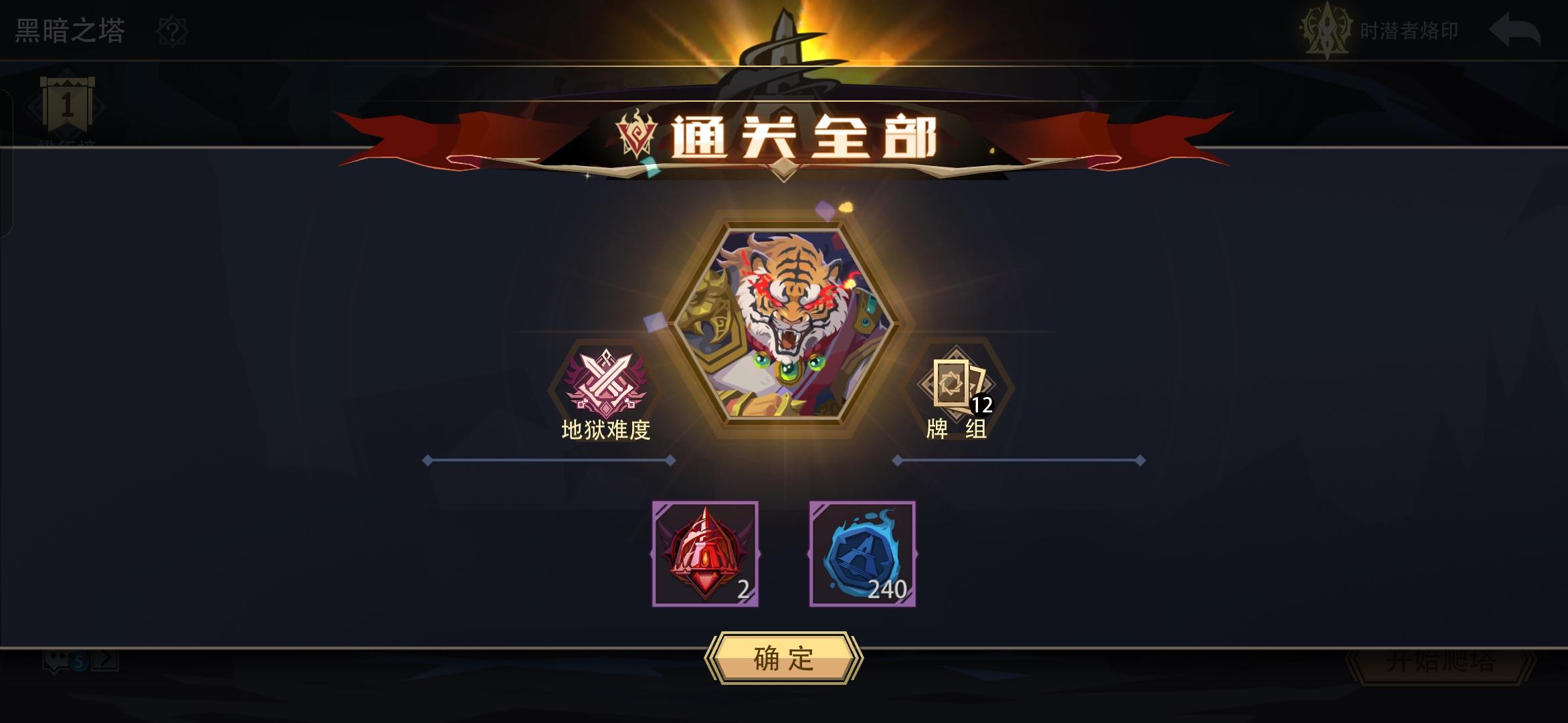 满配老虎的强大之处全初始卡组,不用天赋,全程一波过黑塔。没有任何技术难度,全是强度老虎低级坐牢是没有回血+卡不够满配的回血每战基本恢复10点血以上加上上古之书相当于抽了三张优质魔法卡强的很是我最推荐的限定,全模式皆乱杀