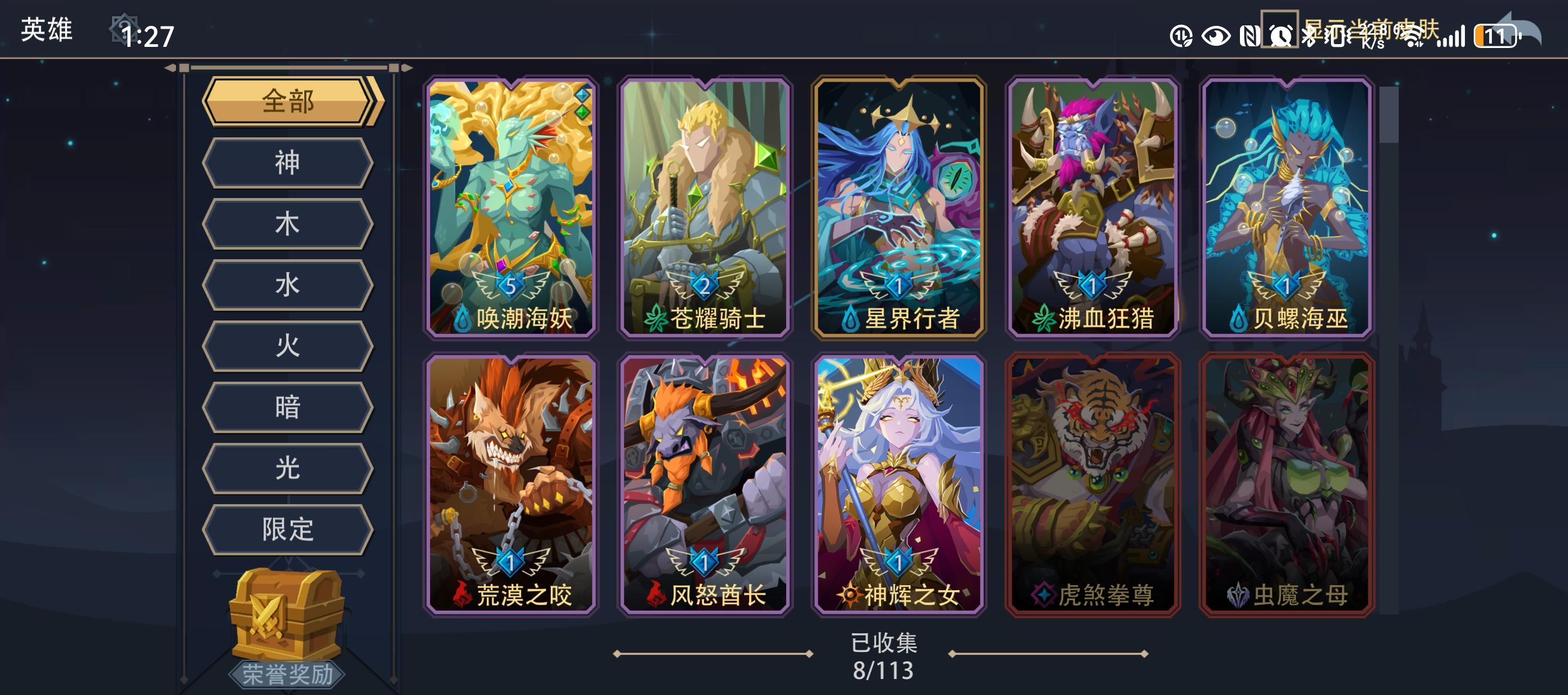 每天打三把,跳两把正正好木系跳费爽,火系打脸猛,水系解场强,暗系控制好,光系站场多最顺手的是刺客,开线解场太爽了各种抓位,木过牌跳费水系退化回手火系直伤暗找难解的光有两套,反伤还是每回合自己看着来,反正都缺过牌