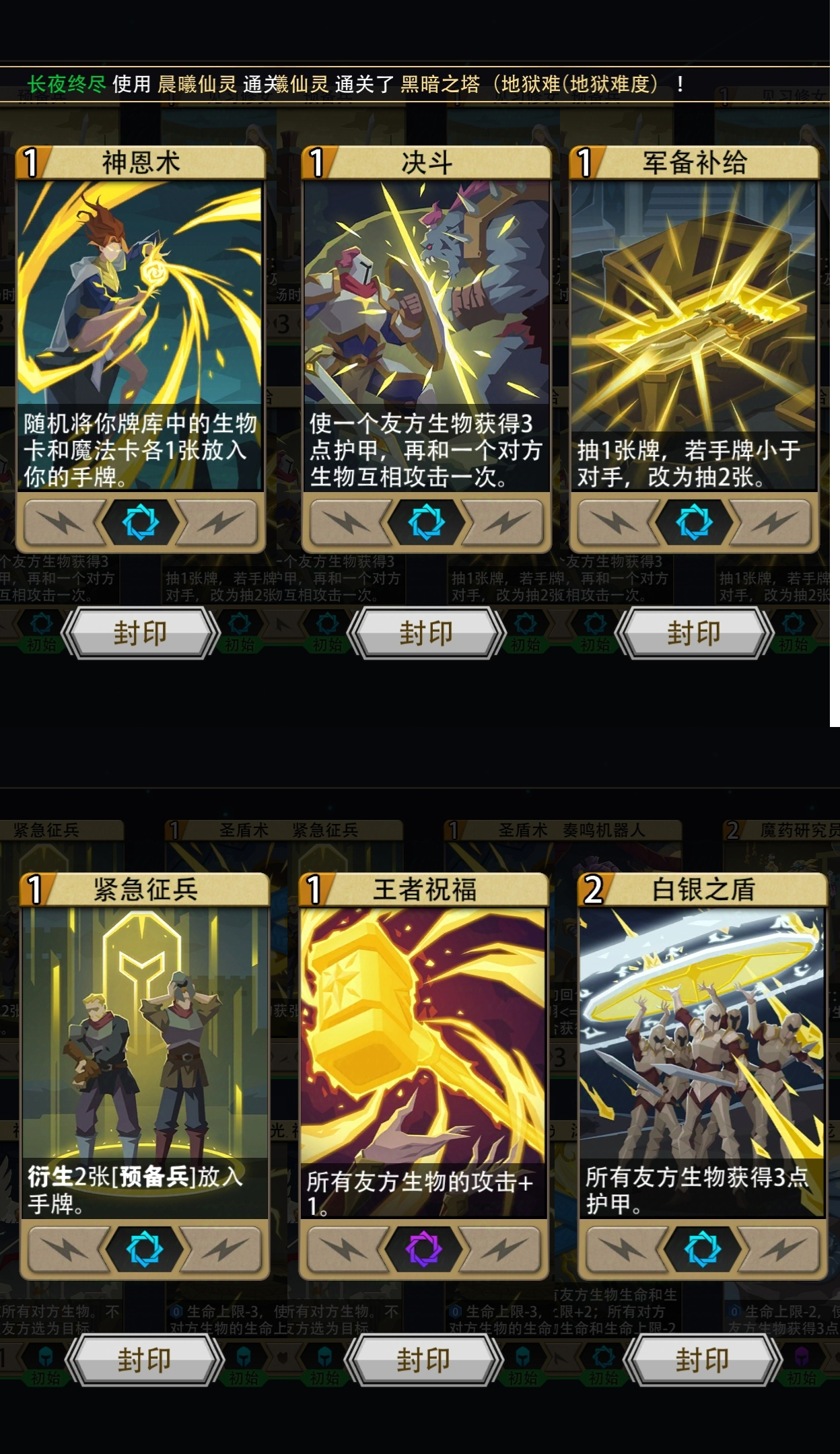 1、简评key牌好找,很容易成型,强度也在线,蛮好玩的。牌好找这点真的特别加好感,被5系卡池摧残后真的很喜欢这种闭着眼组卡的感觉(泪目)。2、封印光系:初始留决斗,神恩术和军备留一个(我目前更喜欢神恩术),非初始留白熊术士、战斗法师,这哥俩虽然贵了点,但优点是特别稳,高难度带上很安心,法师加攻比石像骑士稳定,多个白熊伤害是指数倍增,不过没有特别大的用处,一般一只能帮助石像秒怪加攻就好。装备