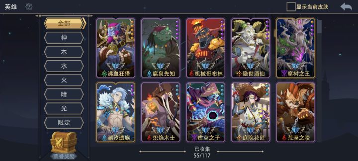 这是第二次玩,第一次应该是两三年前,因为一开始玩了水系,打得太郁闷了,果断卸载,去年无聊又下载回来玩,一直都玩得很佛系,春节才充了个永久卡。水系就一个字慢,新手千万别选,不RMB也不要养金卡,金卡需要的碎片转换数量好像是紫卡的2倍,先养一个满级紫卡打试炼场、黑塔、变装派对、基因工厂,因为长期要打,所以必须需要选一个能快速结束战斗又不太费脑的。建议新手首选光系酒仙,又稳又快的英雄,不费资源不费脑,