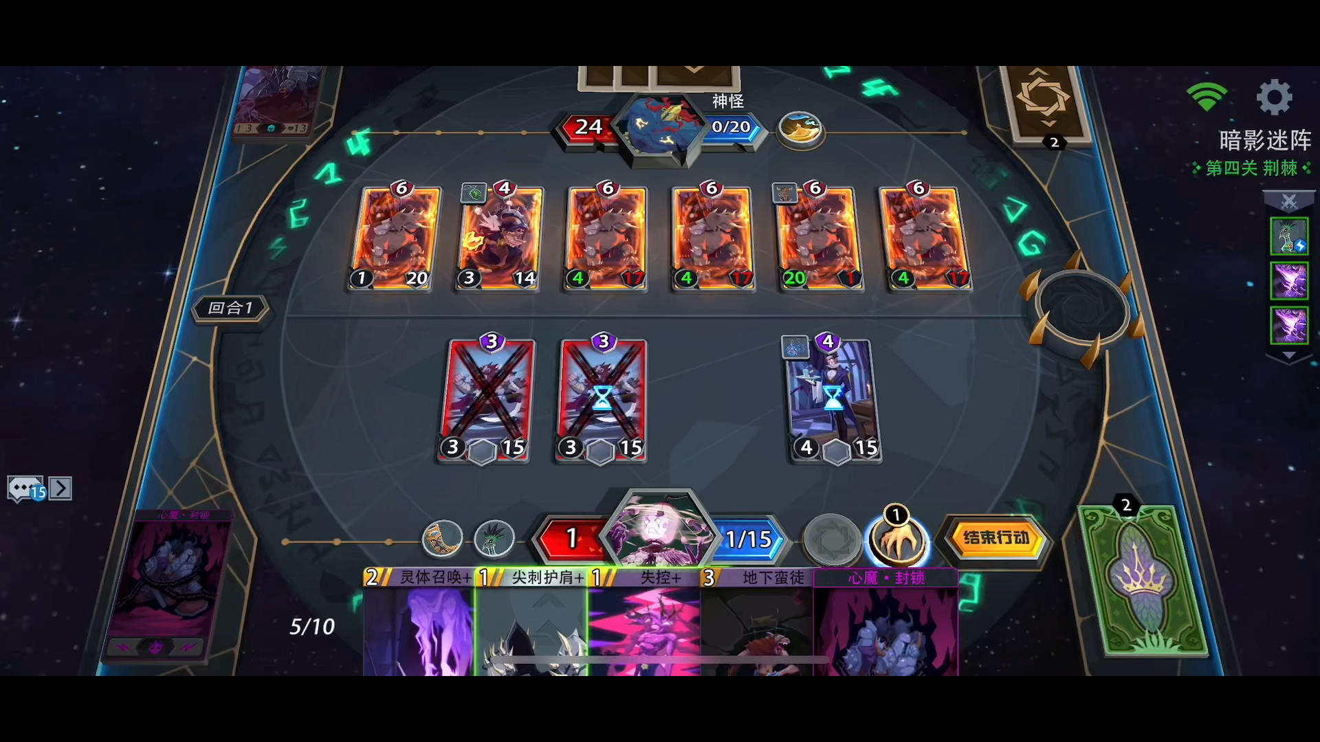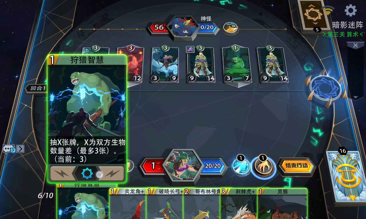 这关需要灵活选择站位,让4费生物的对位大象攻击为20