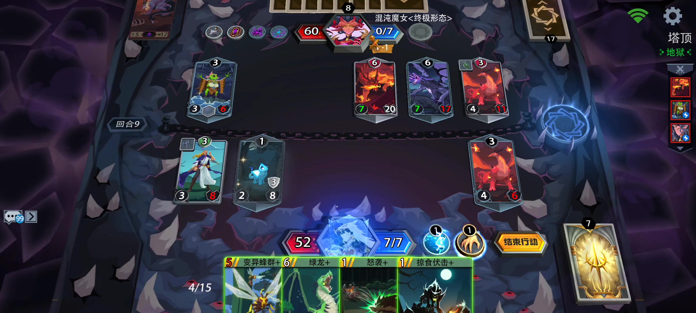 因为地狱70首通后魔女也才25级,所以我的魔女本身初始法力是只有两点的,小编魔晶不多,今日靠每日任务买的两张门票通关了最后一个魔女,下面详细讲解魔女爬塔攻略,希望能帮到大家… 1.解场 两点法力的情况下,一定要用重塑退化对面的初始绿魔,相当于半解场,不然无限加攻加血,后期很难打 2.拿牌 建议带进化与魔仆还有拆装备的牌(拆装备很重要啊!),分别是削费与触发我方BUFF用,装备牌很关键,回血装备以及