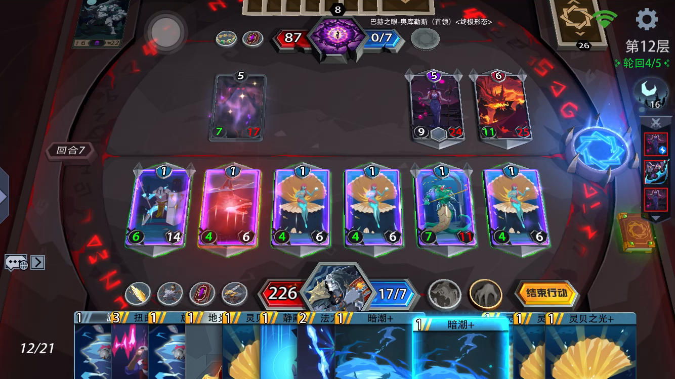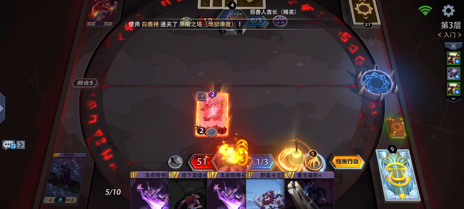 开头忘了录了,不过不打紧。地狱难度,初始卡组花费180删除3张牌即可,中间吃4次血包。等同于0天赋,0卡牌0卡牌升级,就有可能通关。
