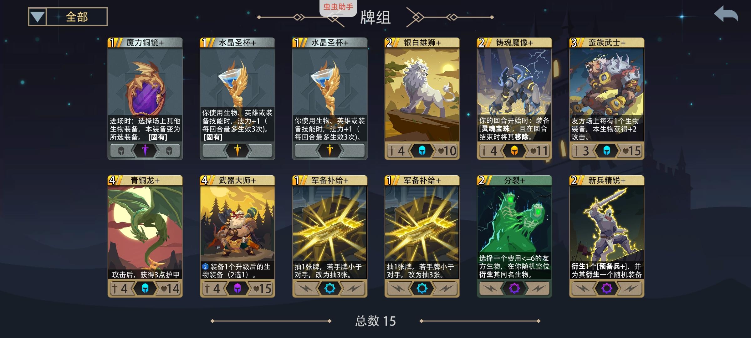 主要生物,蛮族武士/火炮工程师次要生物,狮鹫骑士,拆装备的, 自带的低费小怪封魔法,留补给,惩击,新兵精锐/留补给,征兵装备封金拿圣杯,连击,镜子/圣杯,妖刀,镜子道具优先拿玩具兵人,宠物项圈,技术扳手。脑测时感觉一般,实战很强,下限很高所有里装备圣杯优先度最高,开局抓到全局玩的都很舒服蛮族武士玩速攻,工程师能速攻还能打直伤,但玩起来不如蛮族武士熔铸用起来很不顺手,配合圣杯才不亏费