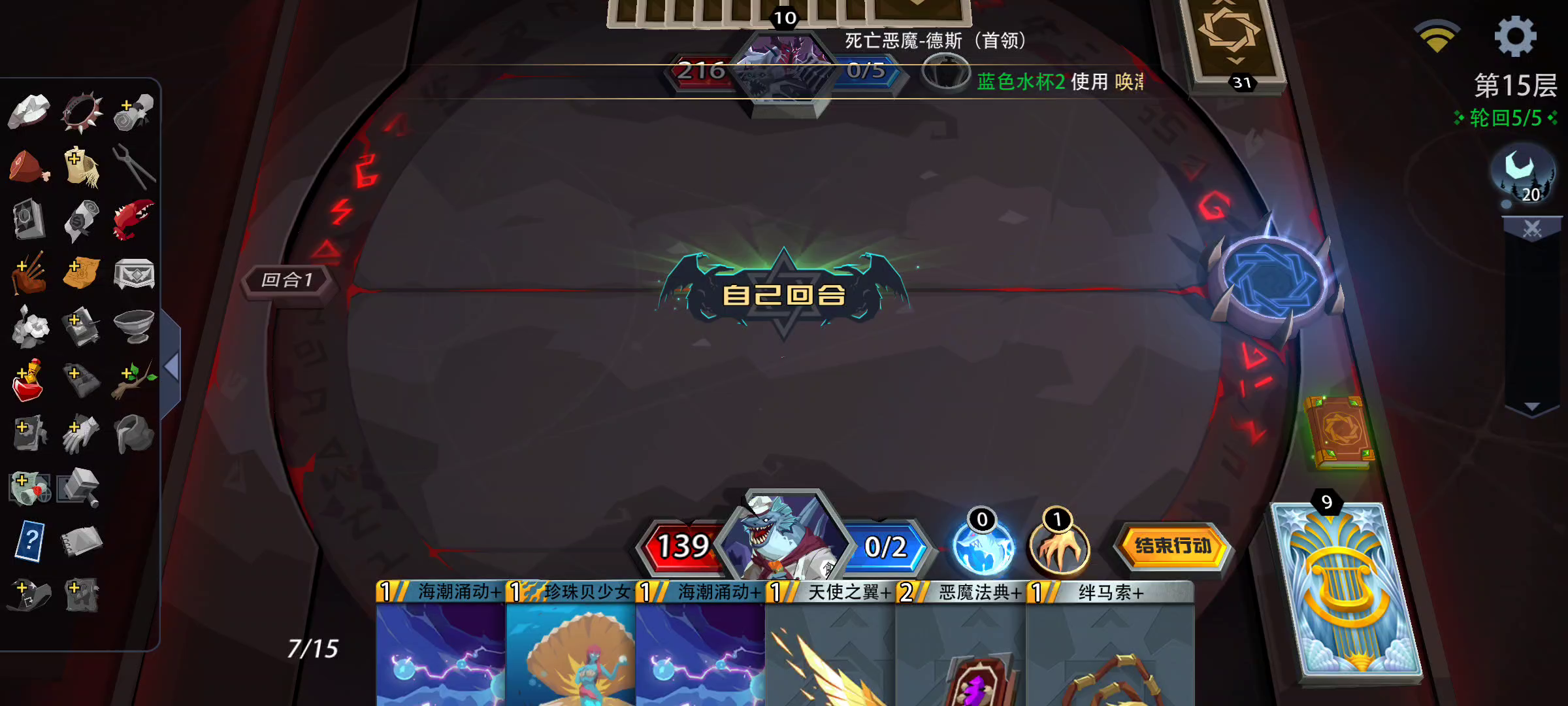 精简之后千万别走问号,那生物就是累赘。这一套不用一个个选择弃牌,舒适度满分,而且成型也极快。,拿一两个回血道具后就可以一直走空格了。