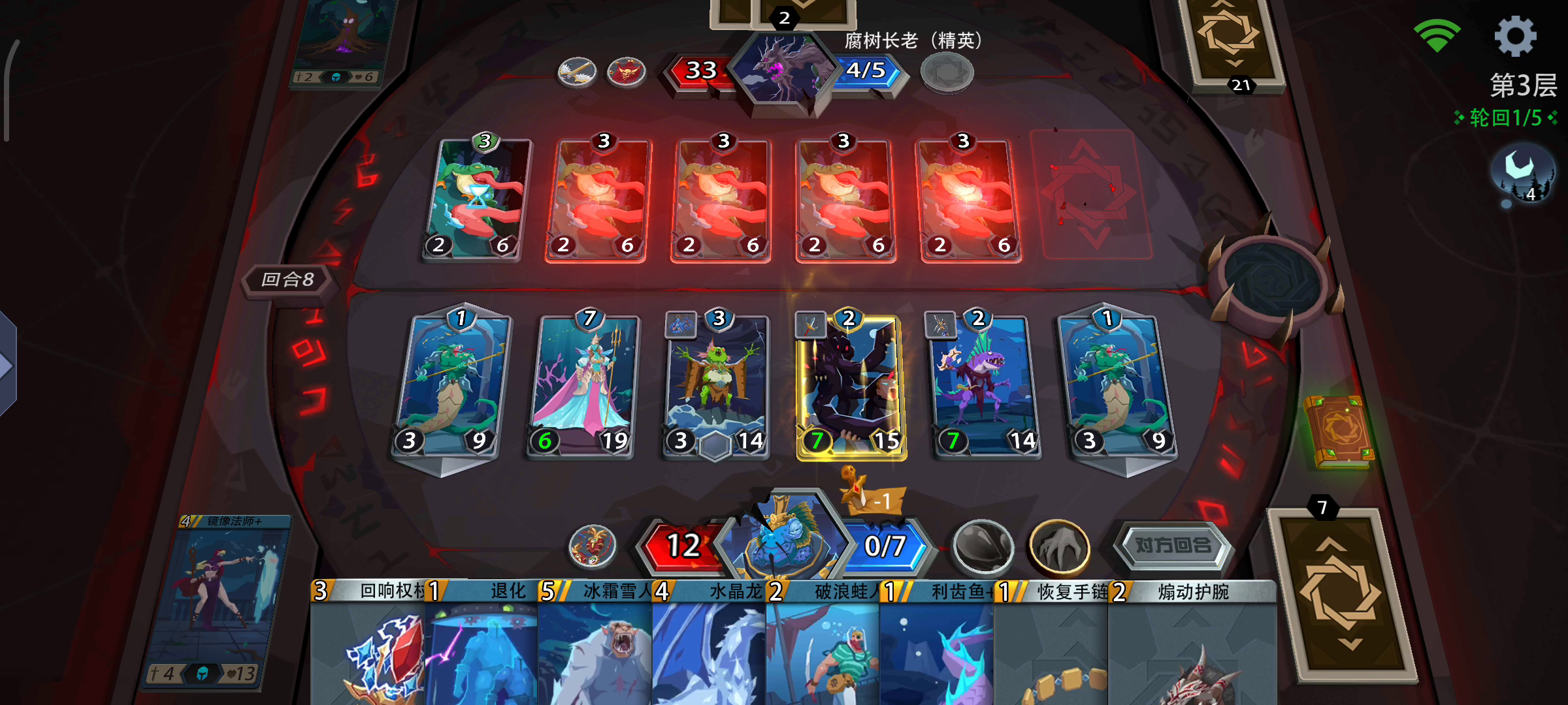 只需要保证第一二回合不被对方铺场,用小火球或者旋风等卡进行解场就可以,如果实在解不掉,就需要保证对面有几只怪,我方场上有几只荆棘就好了