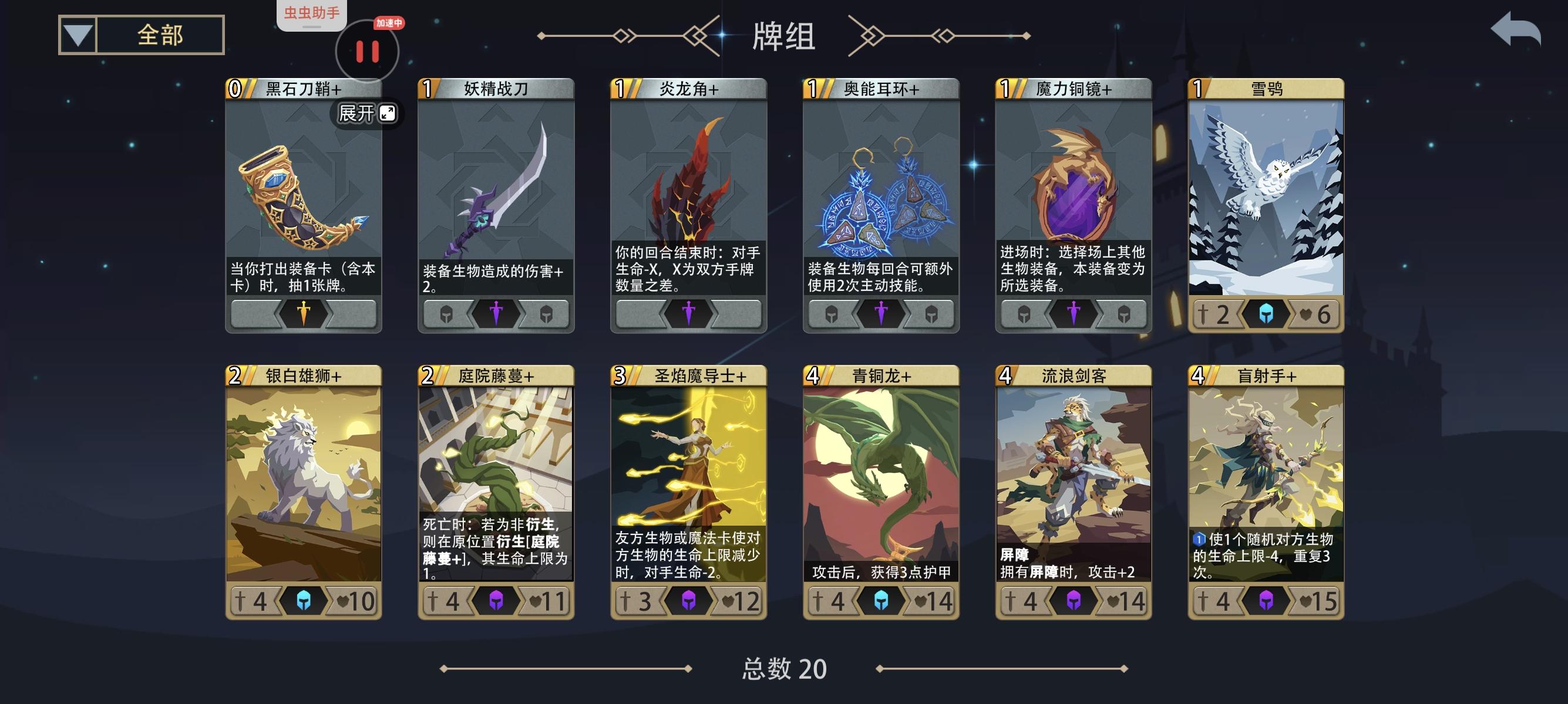 英雄强度在线,一遍过。可玩铺场速攻,护甲叠攻,魔道盲射。或者装备合适如我这把,魔导盲射。优质4费如唤灵侍僧,流浪剑客,盲射手等,见习侍女。根据来牌定阵容。