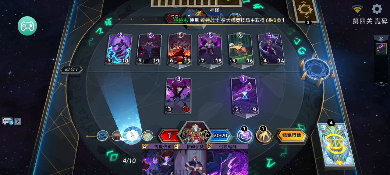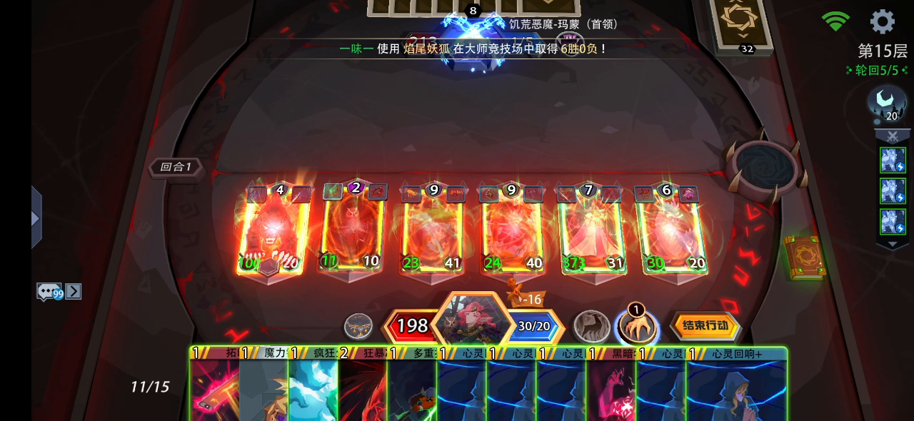总共六张牌,三个装备用不着没来得及删掉,就用连击跟两张海潮就通关了。第一回合套娃加速攻,再加一只狼连击几次能招鹿了,就有了17连击#攻略