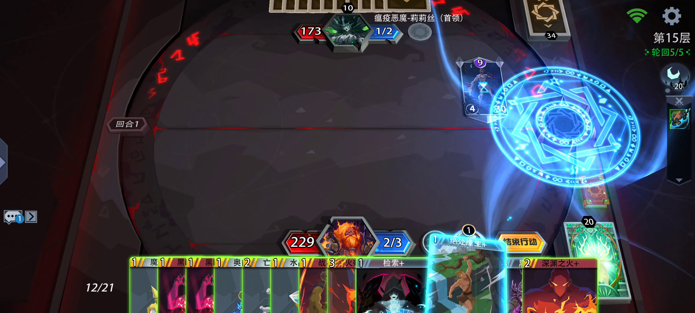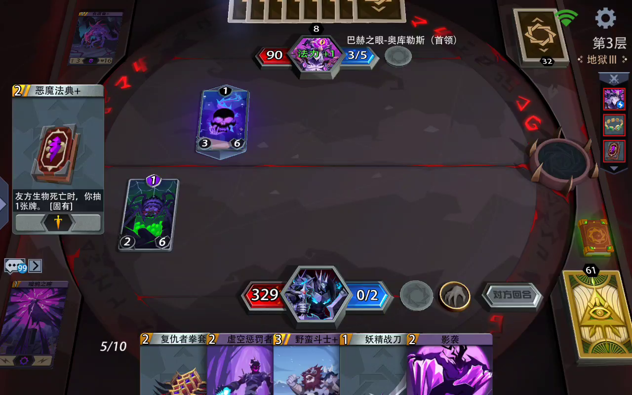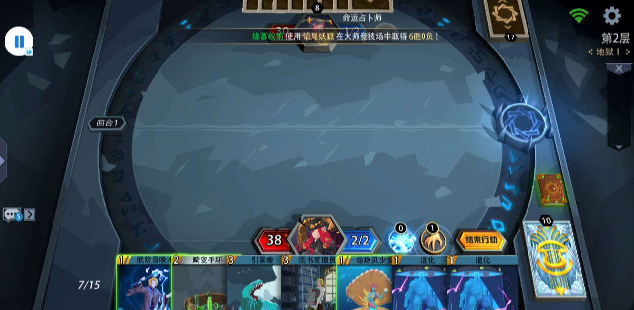 有魔法守卫在手,炸弹相当于纯正面因子了。黑魔法宝典没想到也挺好用的。 缚法者因为被动有发动一次过一张牌的效果,所以推荐卡组精简些较好。 这局地狱一直接无伤,前期卡组杂牌多略感难受但很快就舒适起来了。