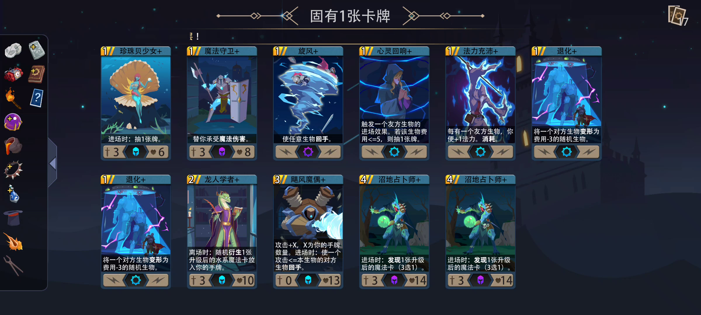 梦魇模式因为对面有梦魇兽,所以只需要把自己这边的四个格子填满就行。而且因为有套娃遗物,所以就带了2张小蓝龙。因为总共就6张牌,初始手牌就是牌堆,所以小蓝龙是优于进场摸牌的蓝贝少女的。还有就是最好带一张回手的牌,不然碰见莉莉丝海皇这种的就麻烦了。我因为遗物里面衍生了,所以就删掉了。