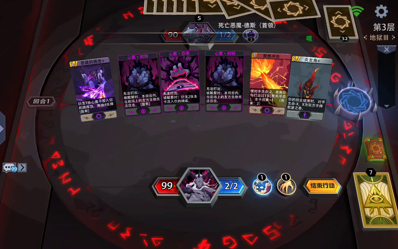 梦魇卡组 :1封锁 2聚焦 1黑暗学识 1能量法球 1机关弩 带能量法球和机关弩,纯粹是因为升级后是0费。 个人觉得卡组还能精简,也不知道是卡bug还是最少6张,没法删卡了。 如果能继续精简的话,说不定可以尝试下1封锁1聚焦。