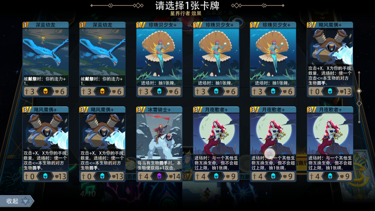 晨曦,莹,狼魂少女木系这三个梦魇凹分最简单 晨曦: 固定:十字弓+圣杯+软泥怪 软泥怪自残,依靠被动+十字弓,伤害非常高 莹: 固定:十字弓+圣杯+软泥怪+木狐狸 软泥怪自残1-2回合,依靠被动提供大量的0费魔法卡,手里有速攻,就可以下木狐狸一波带走对面 狼魂少女: 固定:十字弓+圣杯+骨矛/戒指+软泥怪 狼魂少女跟晨曦差不多,小狼每次升级,都算一次进场离场,能触发十字弓的伤害 但是小狼升到五级就触发不了,所以都带一个戒指/骨矛补伤害 这三个拿了收藏家图鉴,就可以无脑拿牌