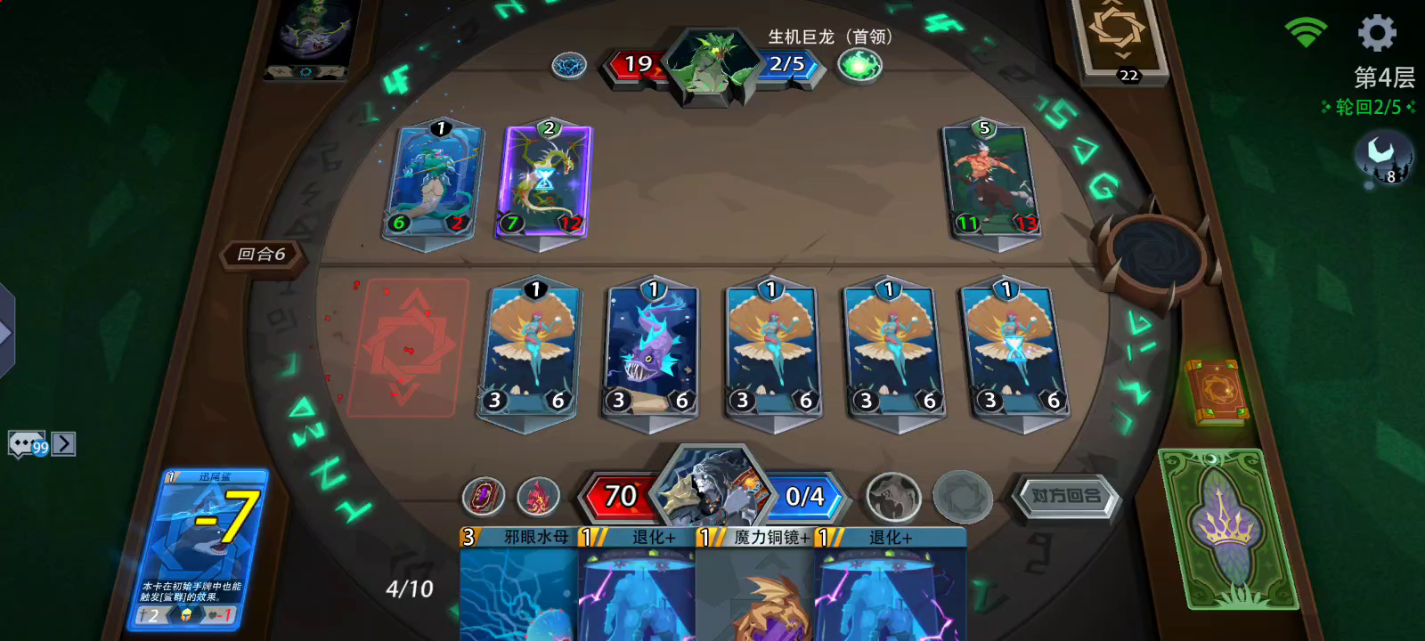 这个水系的鲨群领秀——鲛牙,刚接触游戏的时候觉得这个英雄其实挺废的,直到后期发现了他的亮点,就是核心卡组装备——天使之翼,这张牌给了他无敌的权利。 生物卡:全一费生物,数量在6-7张即可,挑选范围包括变形虫、珍珠贝少女、魔法守卫(必选)、风精灵、利齿鱼、深蓝幼龙 装备卡:天使之翼,哥布林号角,恶魔法典,绊马索 魔法卡:法力充沛(非必选,提高容错) 首先生物卡魔法守卫的作用就是提自己扛敌人的魔法伤害,比如透骨、火系5费生物奇美拉技能、 装备魔能炮、审判者战甲、火焰符文、炎龙角、破晓长弓等造成的魔法伤害,所以此卡也是最为保命的关键;其次装备卡天使之翼,作为低费生物最怕的就是打不出伤害以及血量低的问题,那么此卡很高的解决了这个问题。哥布林号角的作用就是为了降低首回合无伤害的问题也能提高游戏效率。恶魔法典也是核心卡,作为永动机且能够抵消自己回合生物进场延迟攻击的弊端,也能够让生物魔法守卫用不离场。最后这个绊马索最重要的就是防止BOSS战争恶魔——亚巴顿的出现,因为该领主没有生物卡,牌库全是装备,凤羽披风较多,所以也是避免在这里翻车,有备无患吧;最后就是魔法卡,其实强化到26级之后就没有那么缺法力,这张卡作用不是很大,对于强化等级较低的朋友可以考虑备用一张此卡。 以上各位了解,有问题评论区见哟😋😋😋