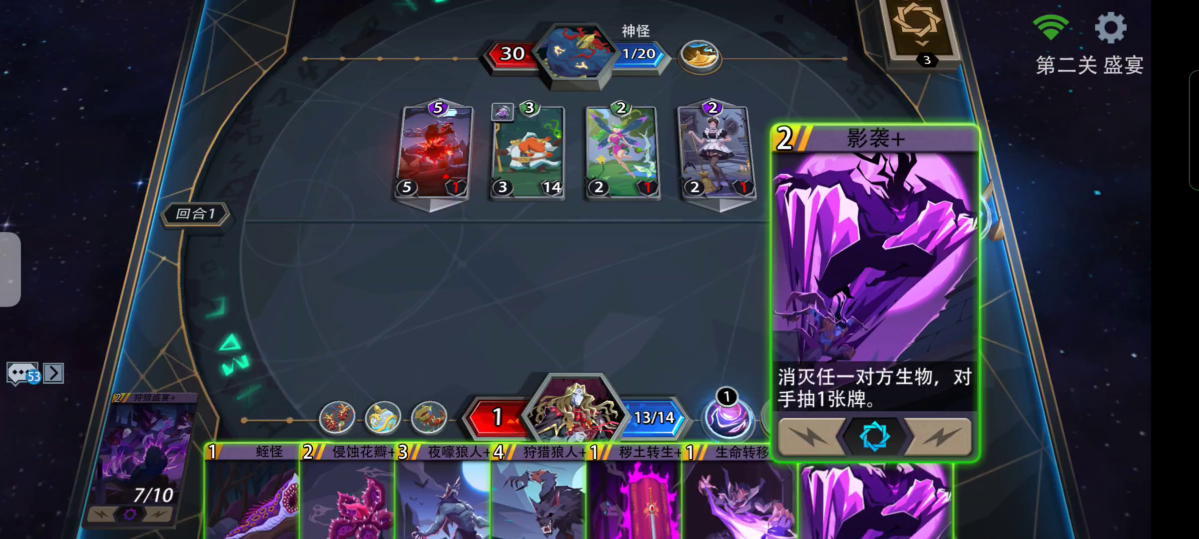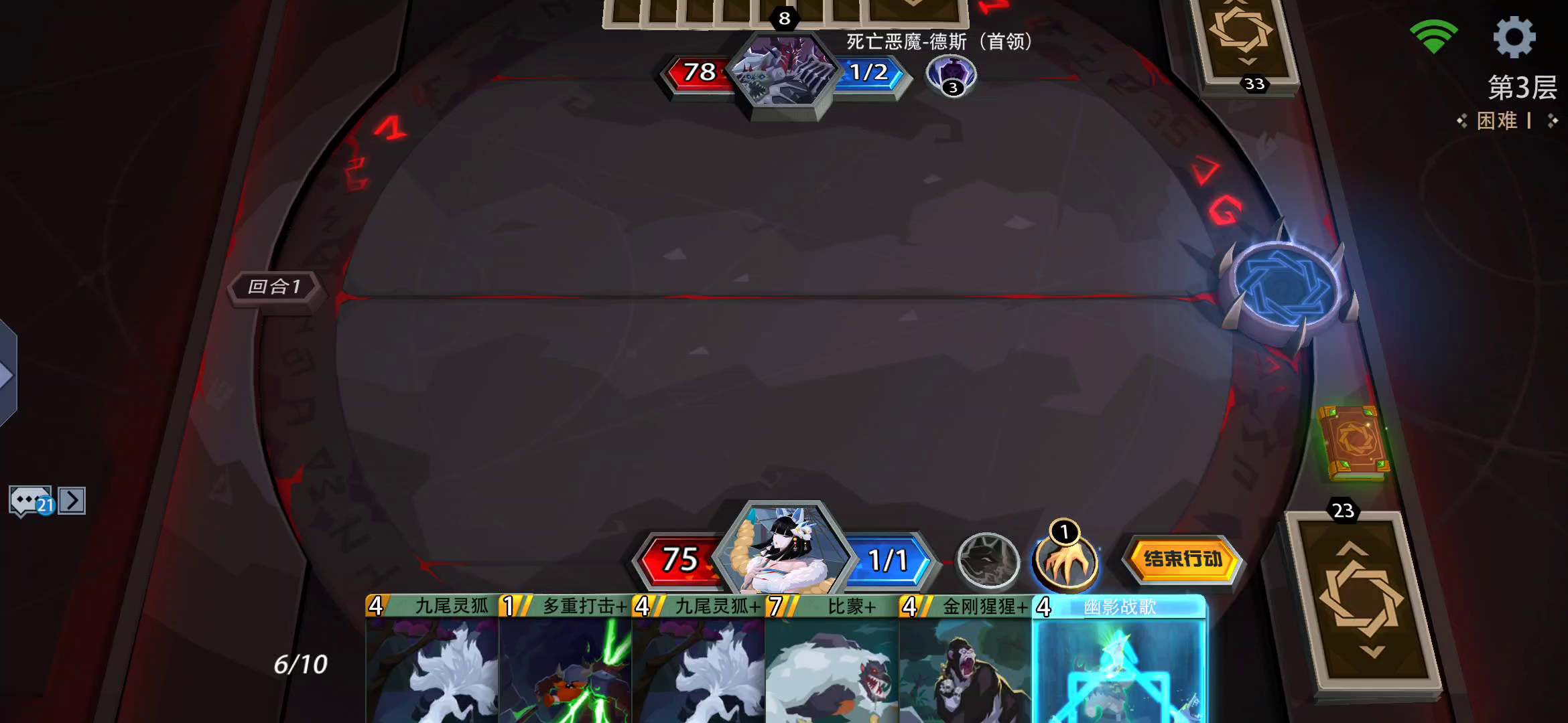 5回合必胜。幽冥使者太强了。无脑通梦魇