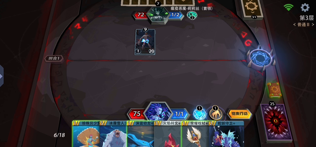 火系有反击流、减费流、技能流、打脸流。我这个就是投矛手伤兵打脸加哥布林进军,运气好拿到猴仗加回血吊坠无敌😁