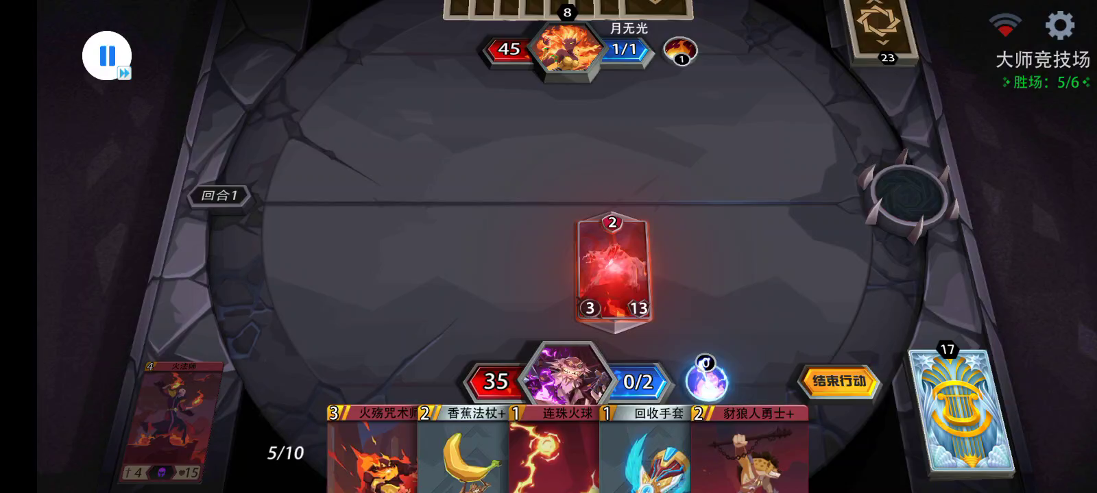 自创三尾蝎穿透流打法,第一回合直接过法,第二回合护盾保命继续做法,第三回合放怪祈祷不要被毁损,第四回合基本就稳赢