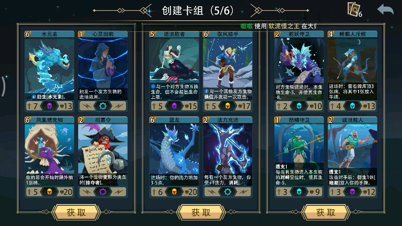 赌徒流(自己是新人,自已为新开发的) 靠鯊魚快速辅场的特性,前期铺场,在加法力牌全后用魔灵守护召喚高级牌 主要卡牌: 法力牌:法力潮汐,法力充沛,魔灵守护,检索。 要点:最好前三个升级再多备一个。多拿点一费卡好让前期没有空位,最好多拿珍珠贝少女等抽牌的卡,再备一个心灵回响(升级的)用珍…女身上,一下抽两张卡