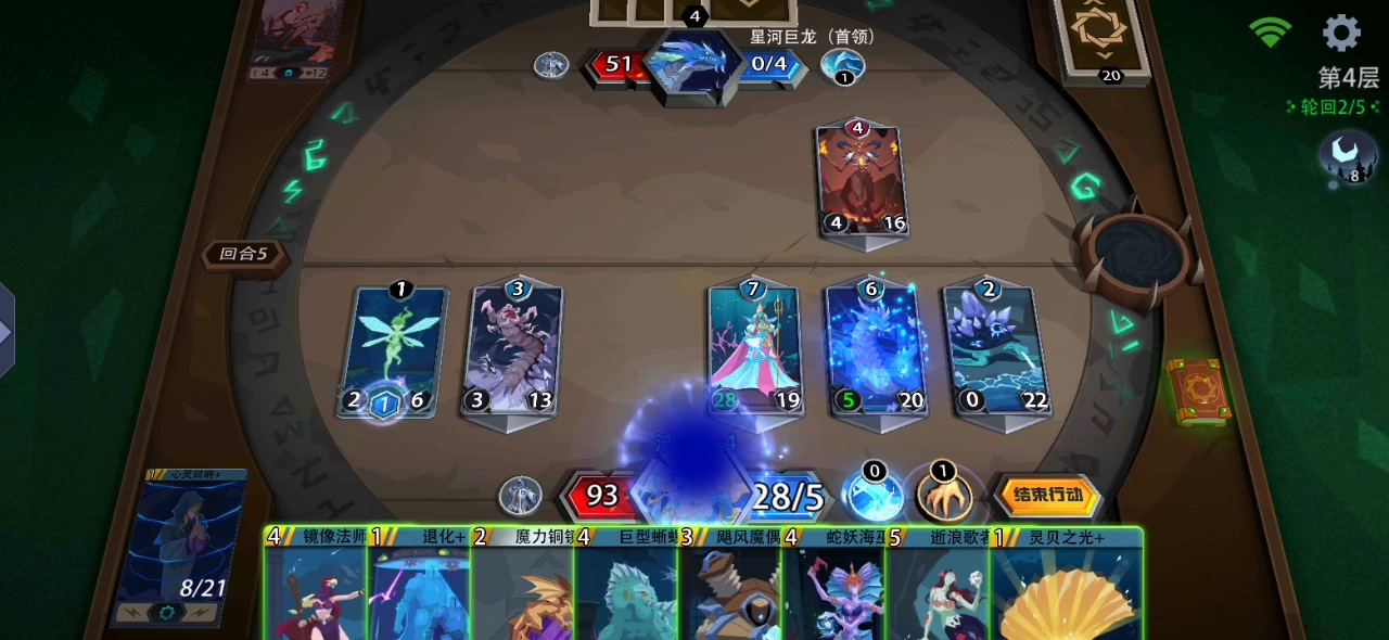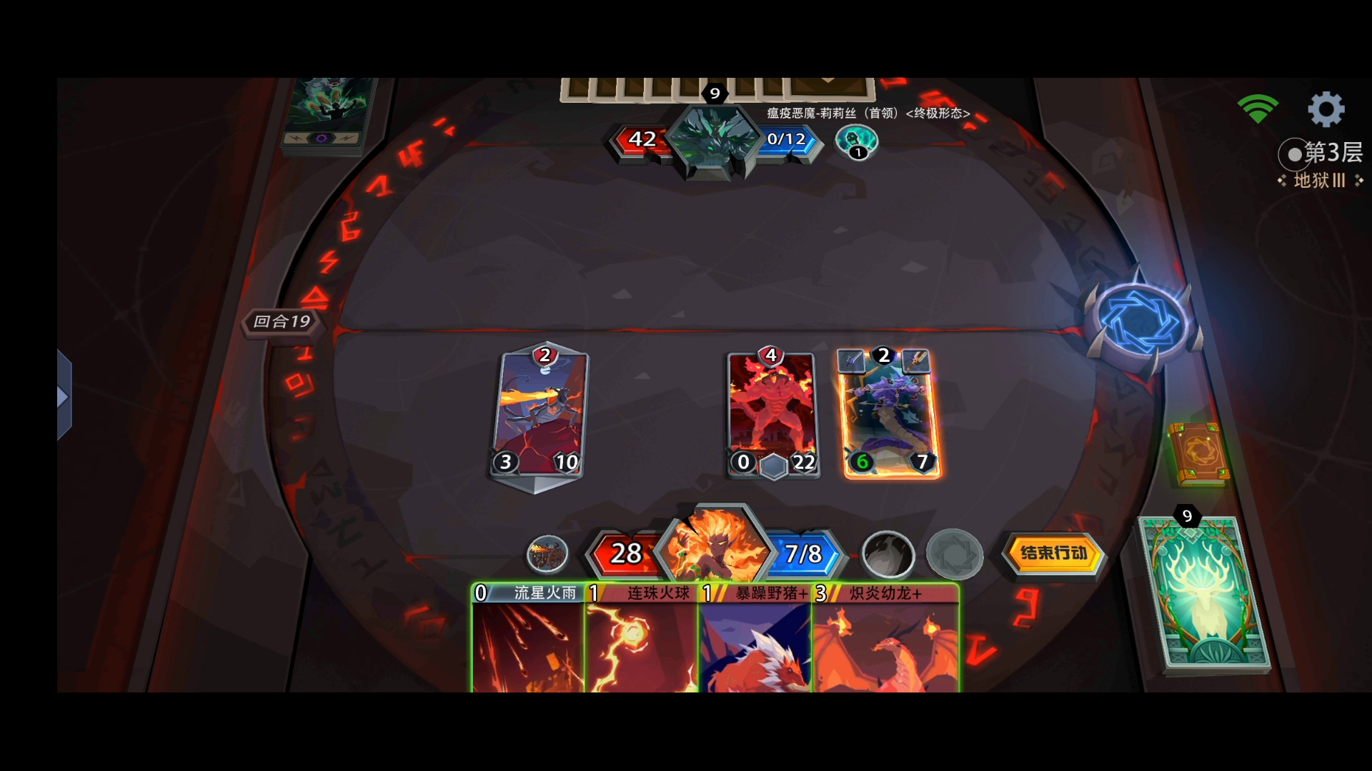 当时发牌完,人都是蒙的,前面一直有发海巨人,有两手准备,结果boss战给我来两个猎龙人,人麻了,索性过了,好诶