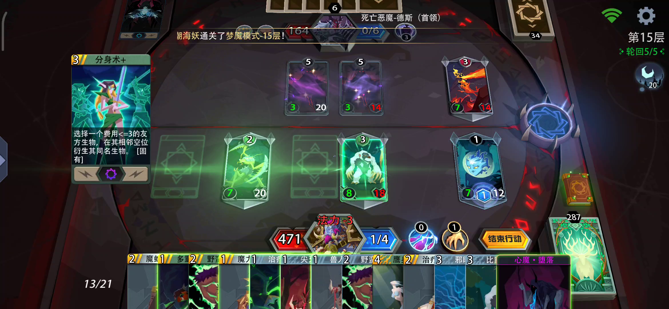 优点:基本全靠低费生物卡磨时间,技能梦魇属于回合数越长他越强,并且无法被选中。缺点:由于低阶卡较多,可以用火系卡或群伤卡进行有效针对,例如,火镰刀,三连发火球,或配合群体增益卡。