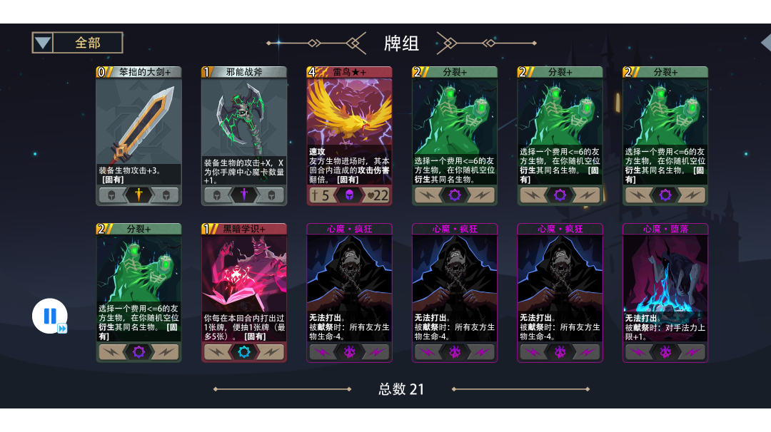 一回合怪,核心牌雷鸟和分裂 日常期待手牌排序功能