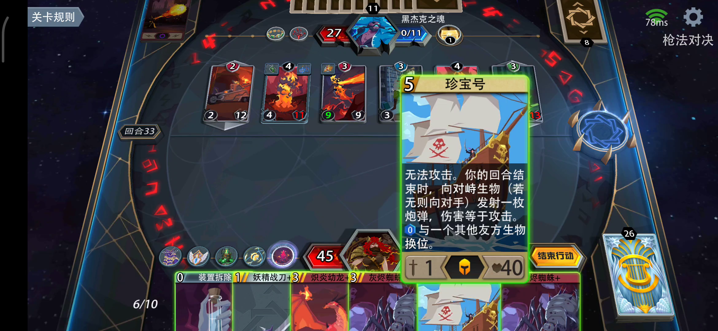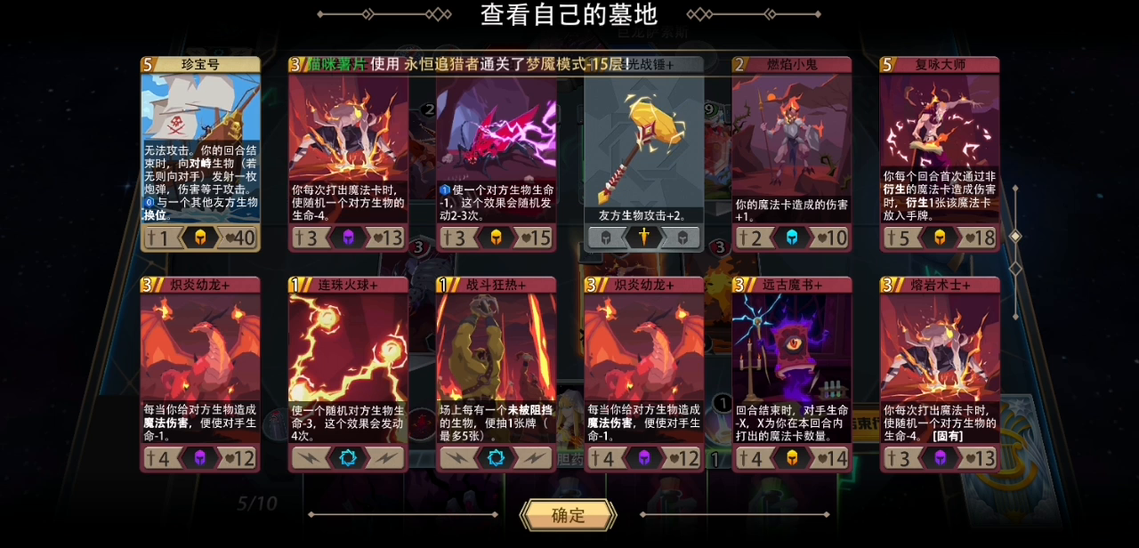 配件就是三个出牌回手打对面脸的装备和一堆法力充沛,绝大部分boss第一回合就秒了