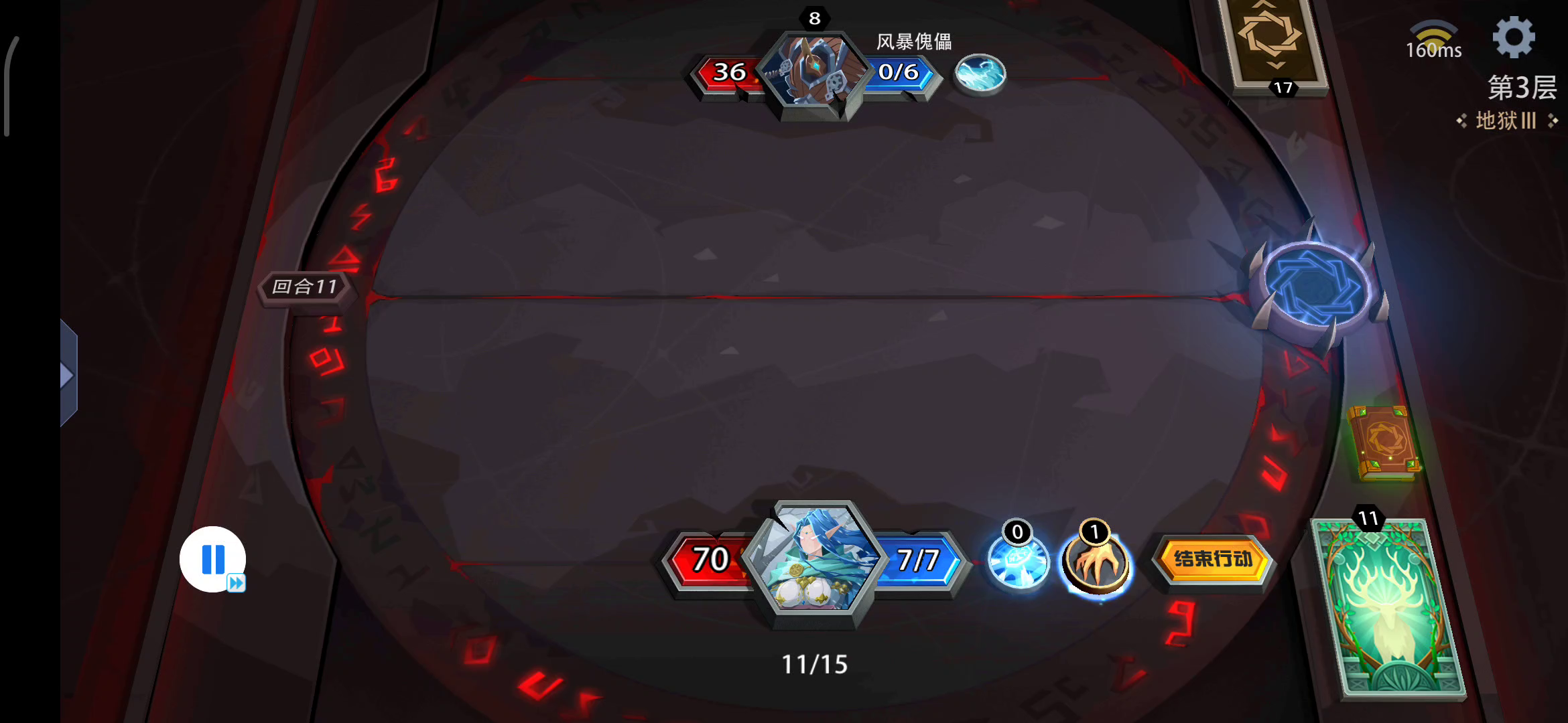 今天bug挺多啊!不知道为啥!抓了一费卡没自动出牌就卡住了!