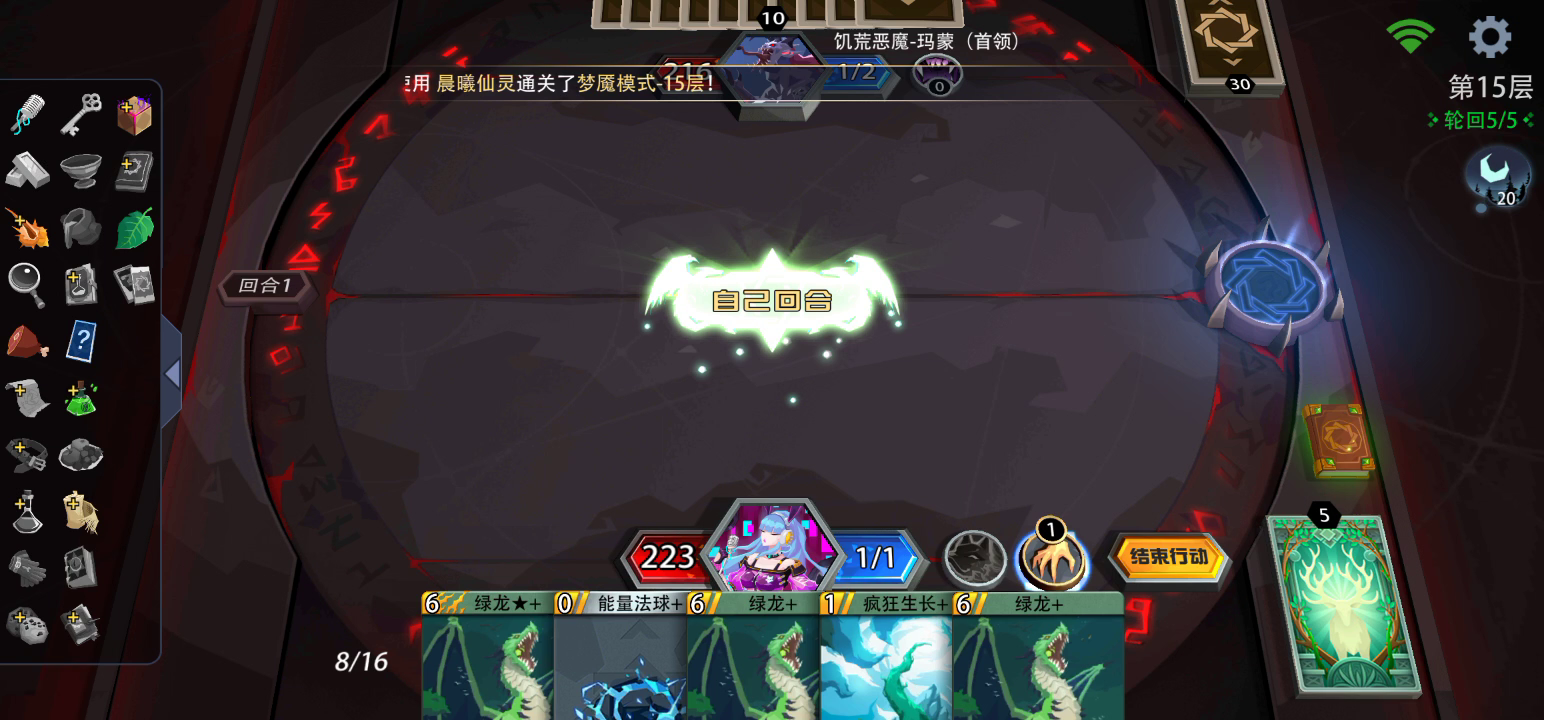 木狐狸绿龙跳费果然快,就是有点无聊,并且绿龙获得概率很低,15层总共就3张,升级的只有一张。 并且打boss还是带个buff快一点,不然打一年也打不穿对面怪。