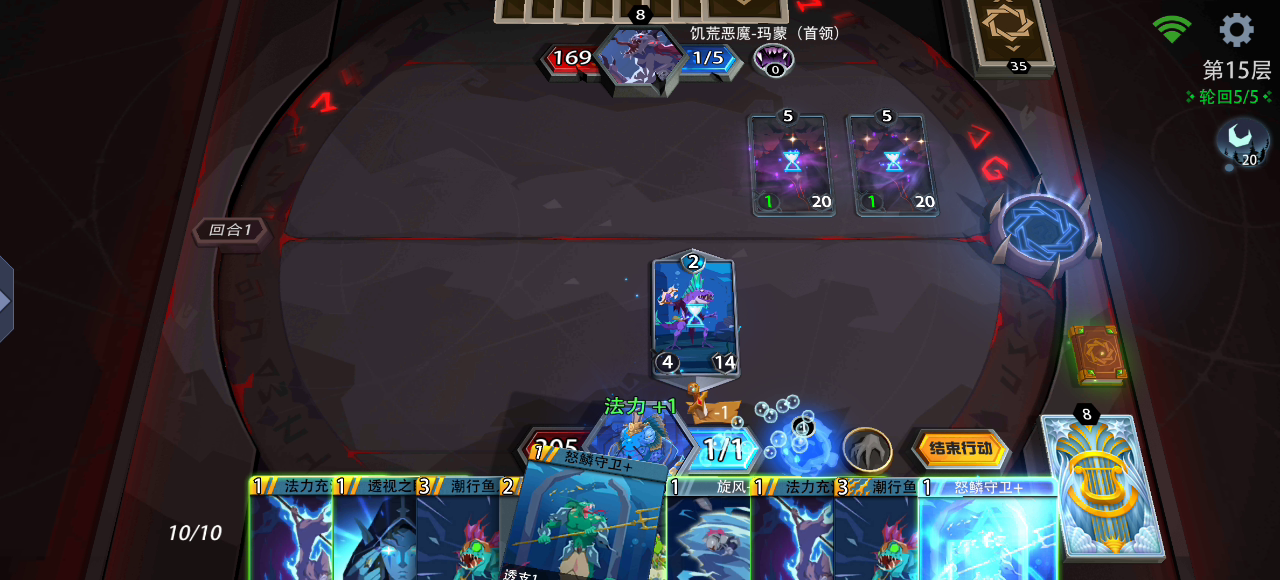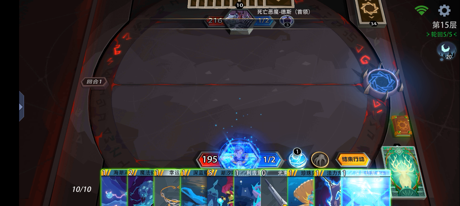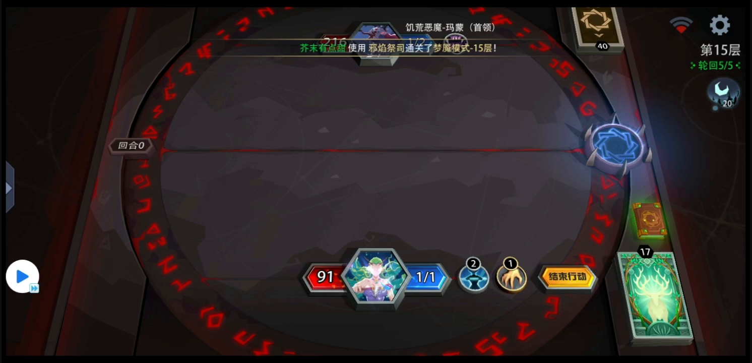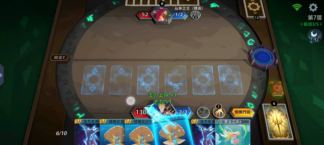打5,抽牌打7、8,兽王,献祭扔卡,依次打独角兽、蛤蟆、最后一个怪,刚刚好