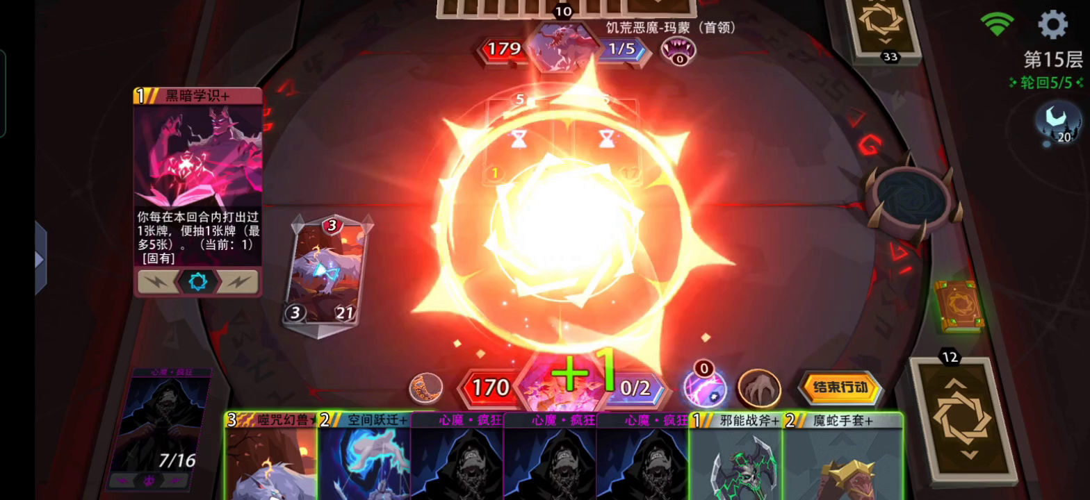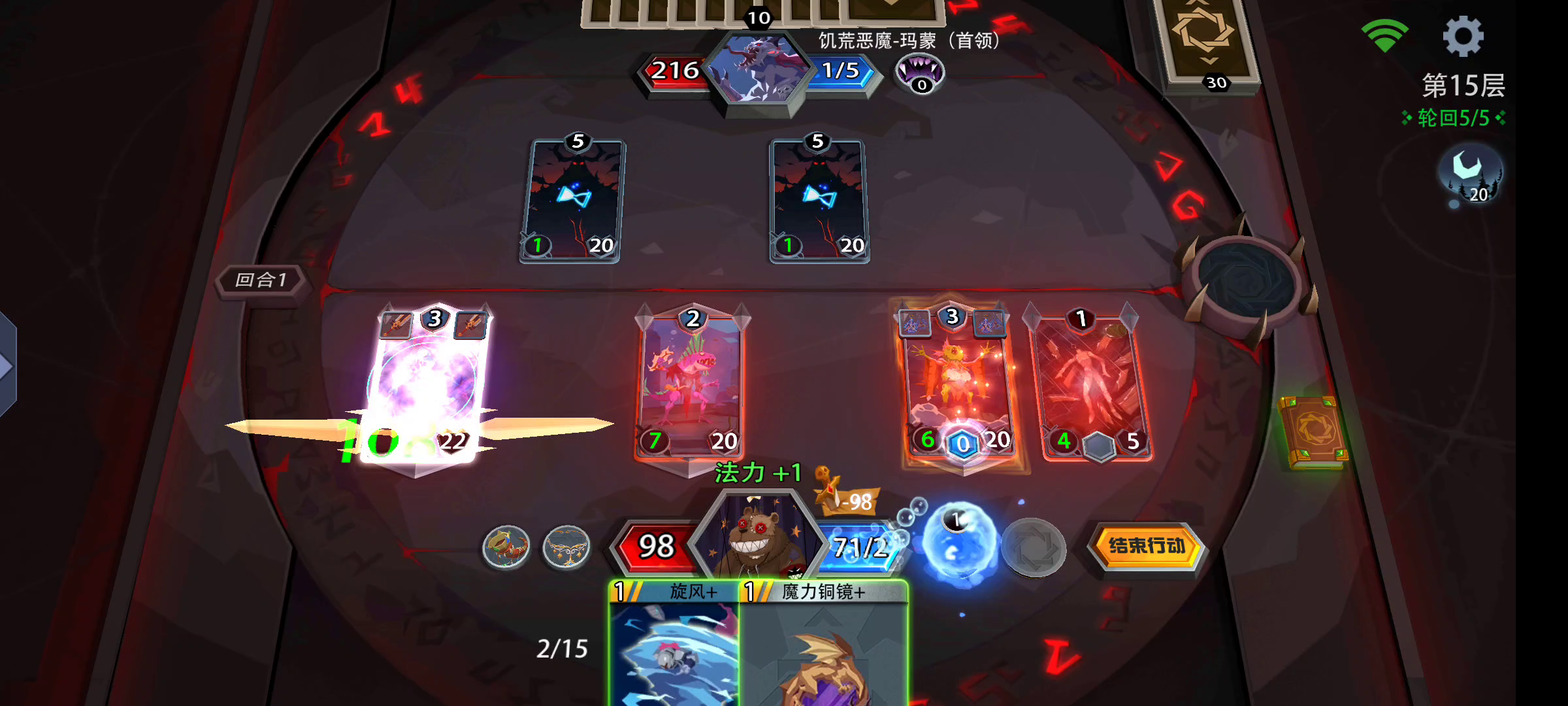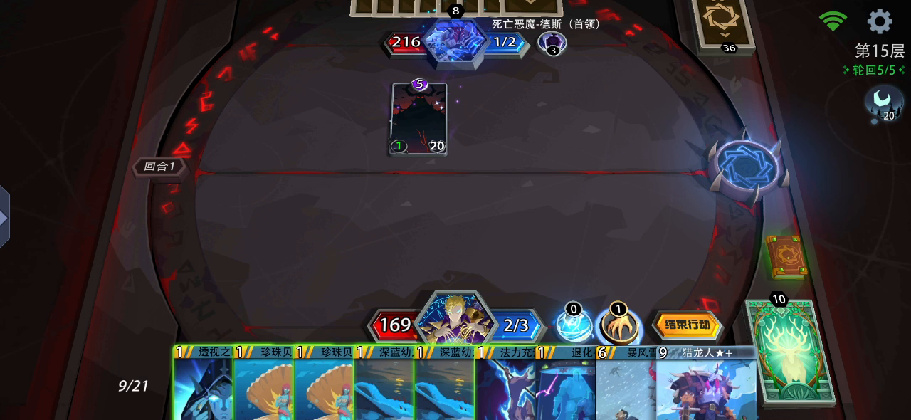 前面四层卡都删到只剩8、9张了,一回合秒杀爽歪歪。 结果第五层冒出个梦魇直接被干懵🙃