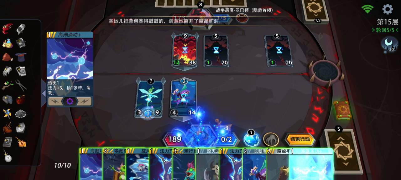 3条深蓝幼龙,1-2张法力潮汐,一张海螺女王,一张魔蛇手套,一张魔力铜镜,一张虚空构造体,一张心灵回想,一张图书管理(主要是我英雄等级低,手牌上限低,如果有升级到手牌上限的或者牌组很好不卡牌了就可以不带)以上是主要的牌,女王是带哥。 然后,最关键的是法力充沛。这有多少拿多少。 道具就是开局加蓝的加了四点蓝,还有无限套娃这两个没有也能无敌但是有了就是两回合解决战斗。 固定牌就固定女王和幼龙(还有图书管理) 芜湖。