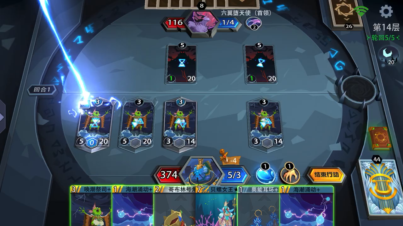 鱼上鱼不挑怪啊,没有对手出手的机会,就满手的海潮涌动一直抽,拿到耳环就起飞了,那个第一回合用一张牌扣一次血的玩意儿拿到了,自己的怪出手的机会都没有,终于体会到这游戏的乐趣了