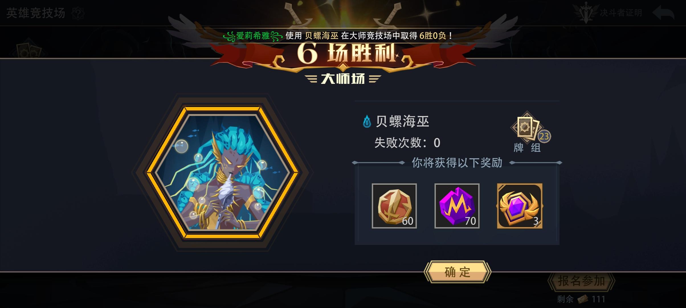 贝螺海巫大师竞技场六胜