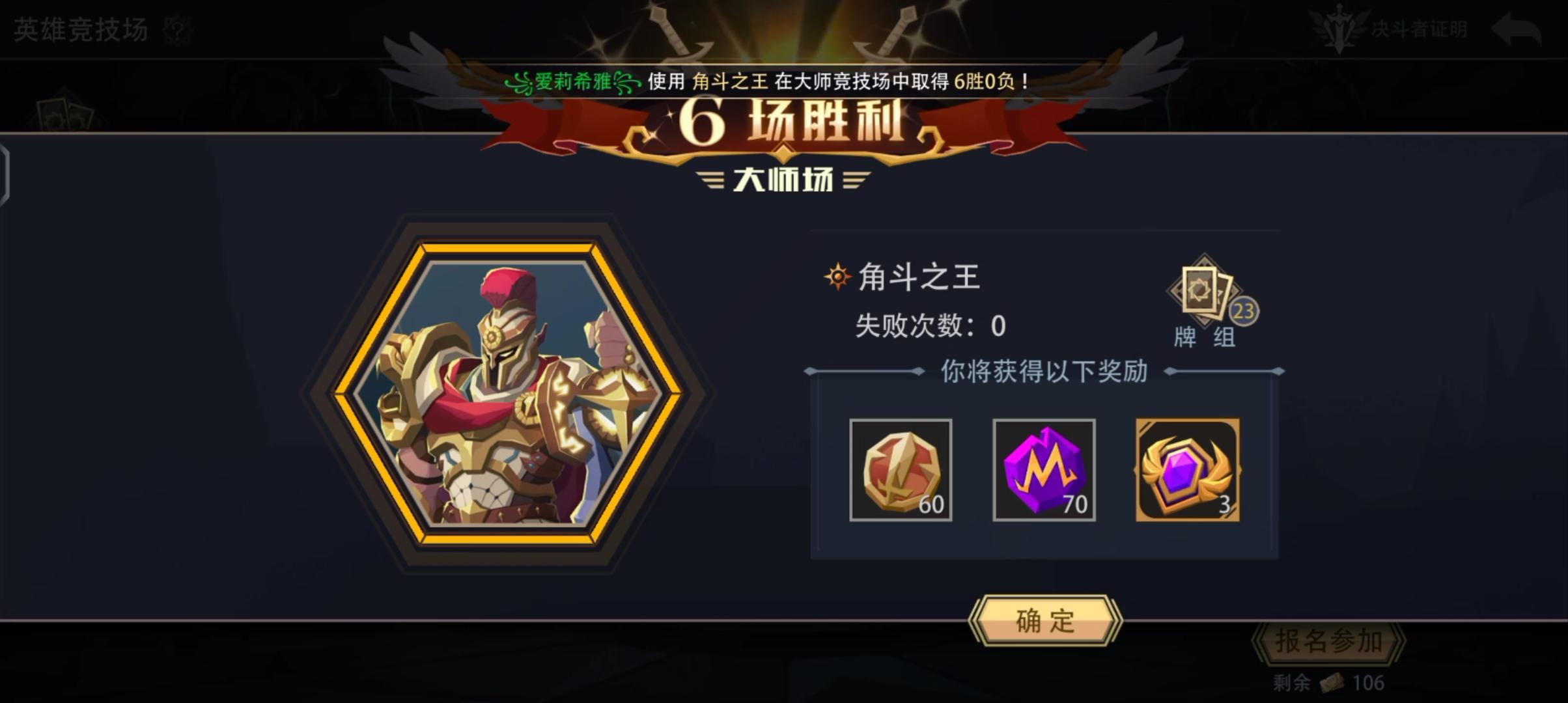 角斗之王大师竞技场六胜