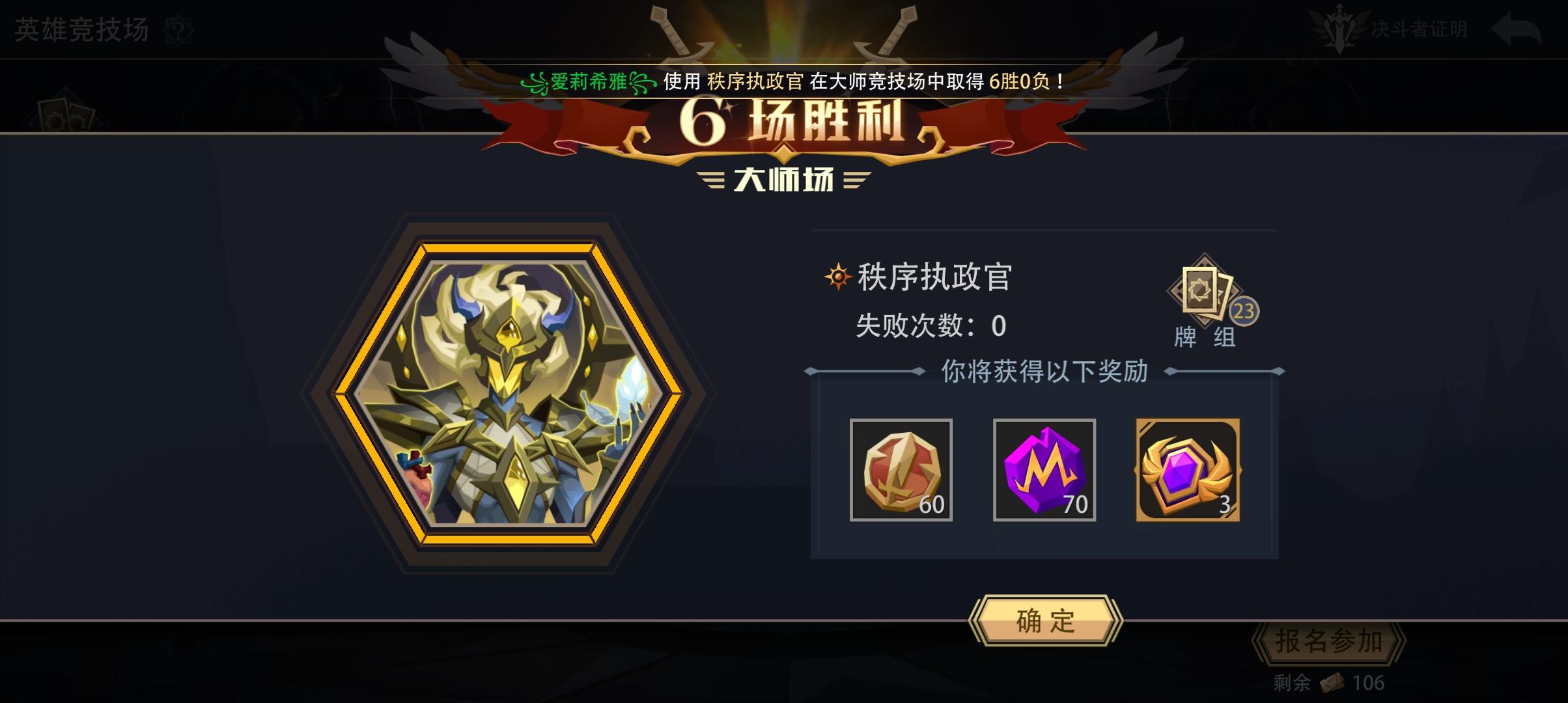 秩序执政官大师竞技场六胜(二)