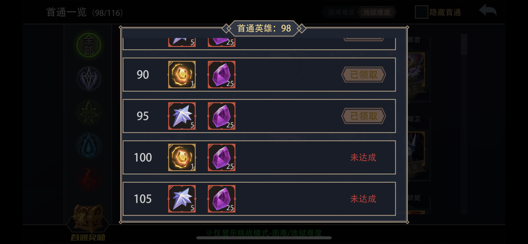 纪念一下五系黑塔全通啦~光系新出的世界英雄不算哦,还拿不到,一共打了98个英雄,基本都是千魂(五蓝),弱一些的给了五紫,很少数,因为之前不玩黑塔,魂太少了。从开始玩到五系全通历时一个半月(不要问为什么这么集中打,因为之前一局没碰过,差不多25年12月底慢慢玩的,然后开始上瘾,之前也不知道提取,都不进去看),