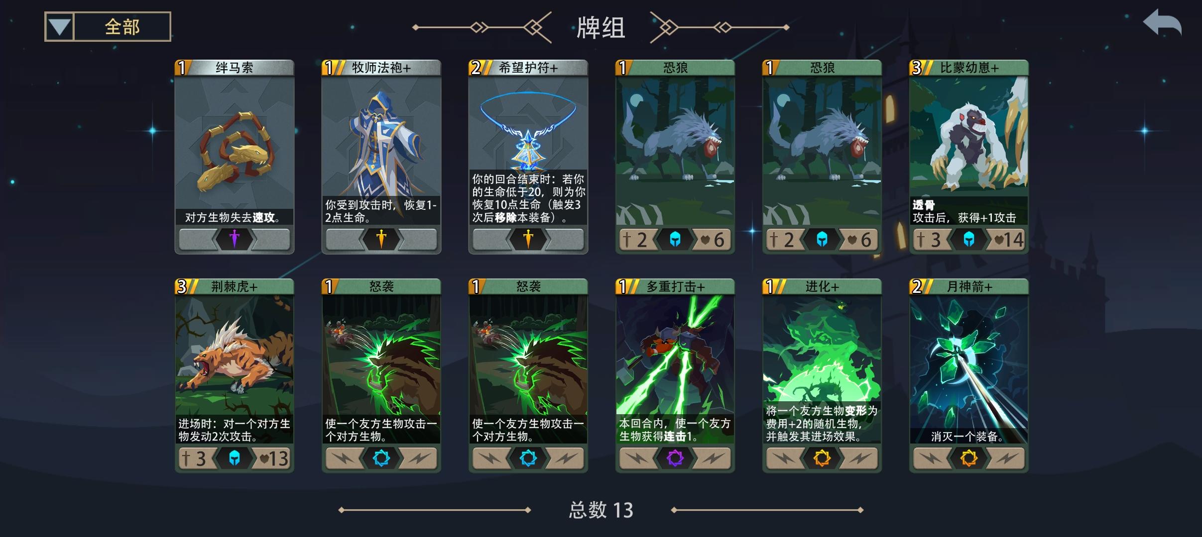 打法思路:这角色初始卡组特别拉胯 幸好技能比较实用不至于太难打 打法也是火系通用的自伤怪&英雄技能清场 然后依赖直伤怪&装备打输出不过由于火系生物费用偏高且前中期法力基本用来放技能和铺场 节奏会比较拖沓 但是一旦滚起雪球就能一直清对面的场 压制力比较强 同时给生物提供良好的打脸机会 可以配合恶魔领主滚雪球亦或是红龙&剑齿战象高攻砸脸卡组构筑:开局删1尖牙野猪1狂暴野熊 抽两次生物&魔法和一次装