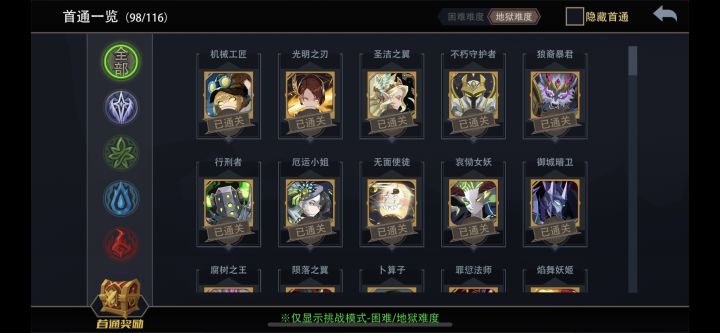 纪念一下五系黑塔全通啦~光系新出的世界英雄不算哦,还拿不到,一共打了98个英雄,基本都是千魂(五蓝),弱一些的给了五紫,很少数,因为之前不玩黑塔,魂太少了。从开始玩到五系全通历时一个半月(不要问为什么这么集中打,因为之前一局没碰过,差不多25年12月底慢慢玩的,然后开始上瘾,之前也不知道提取,都不进去看),